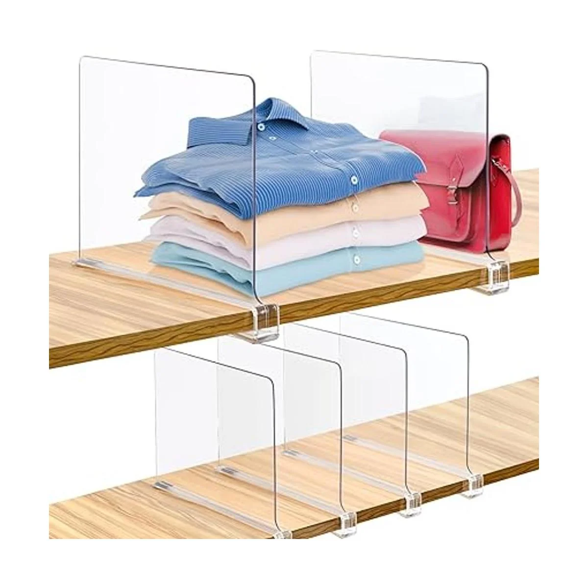 Divisores de estantes acrílicos, divisores de estantes transparentes para armarios, divisor de estantes de plástico para separadores de bolsas de ropa, organizador de estantes de madera para dormitorio, cocina, oficina, gabinetes, baño, paquete de 6