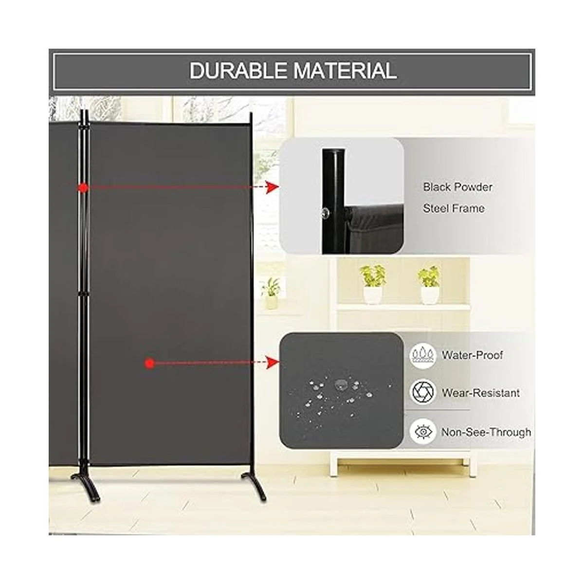Materiales de alta calidad: fabricado con marco de hierro resistente con recubrimiento en polvo, el divisor de pared portátil es resistente al óxido y al desgaste para un servicio a largo plazo. La pantalla de tela de alta densidad está hecha de poliéster de 6.35 oz/m. Es impermeable, resistente al desgarro y no transparente, te ofrece la mejor protección de privacidad