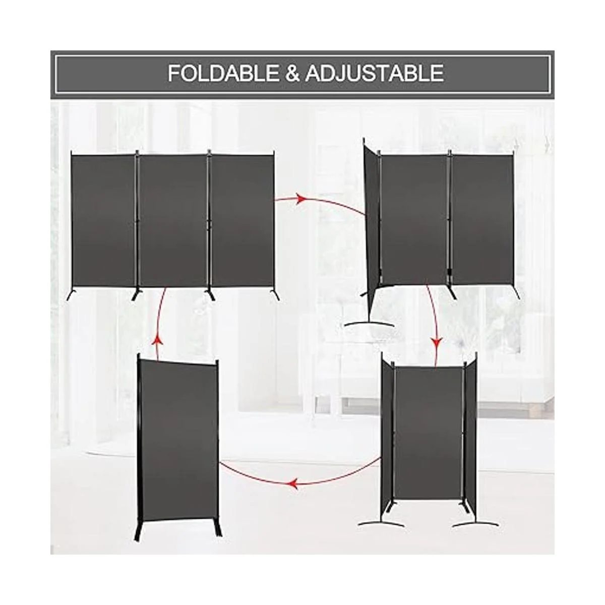 Plegable y ajustable: diseño independiente con paneles ligeros y conectores flexibles que hacen que sea fácil de mover y plegar en un tamaño de panel para un almacenamiento cómodo y ahorrar espacio. Cada panel se puede utilizar individualmente o combinado con abrazaderas