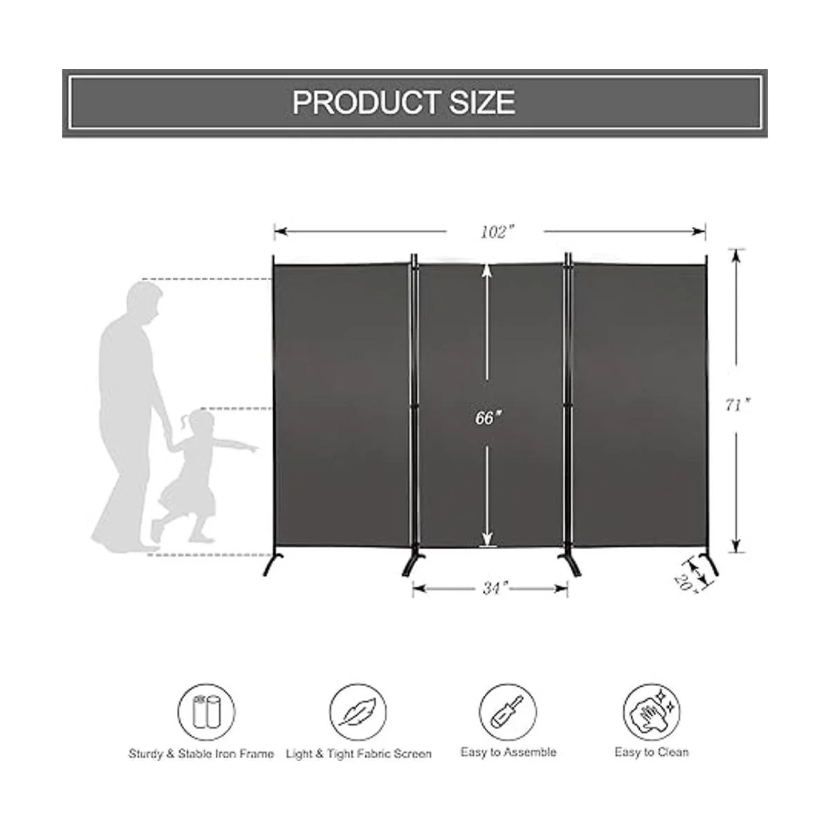 Crea un espacio de privacidad: este divisor de pantalla puede dividir el espacio en áreas separadas como una pared temporal. El tamaño máximo ampliado es de 102 pulgadas de ancho x 20 pulgadas de profundidad x 71 pulgadas de alto. Ideal para división de oficina y división de habitación familiar interior. Adecuado para estudio, garaje, hospital, restaurante, aula, dormitorio, etc
