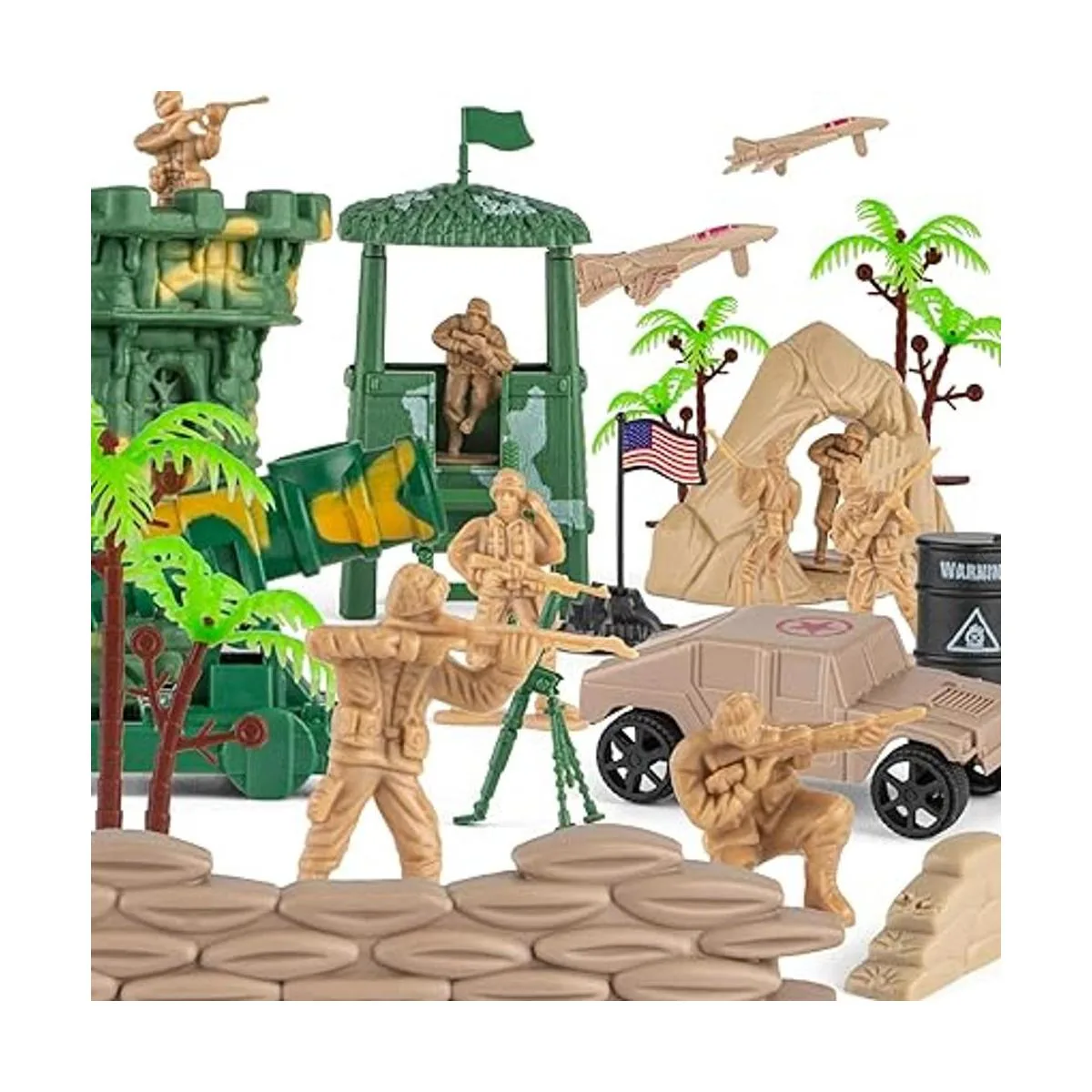 Divwa Juguetes de hombre del ejército para niños de 8 a 12 años, base militar del ejército, juego de 160 piezas que incluye la 2 WW2 de plástico verde caqui y accesorios con bolso para niños