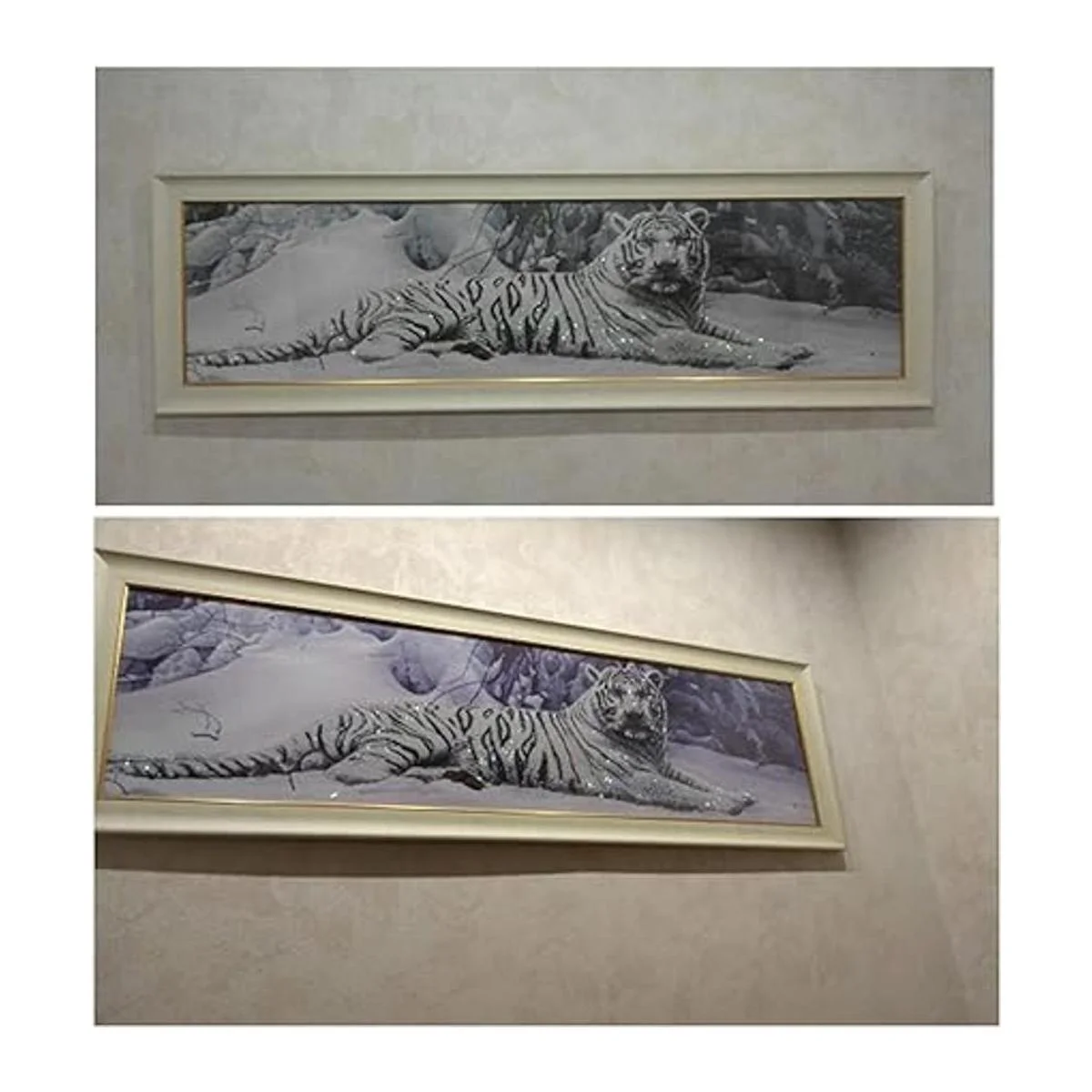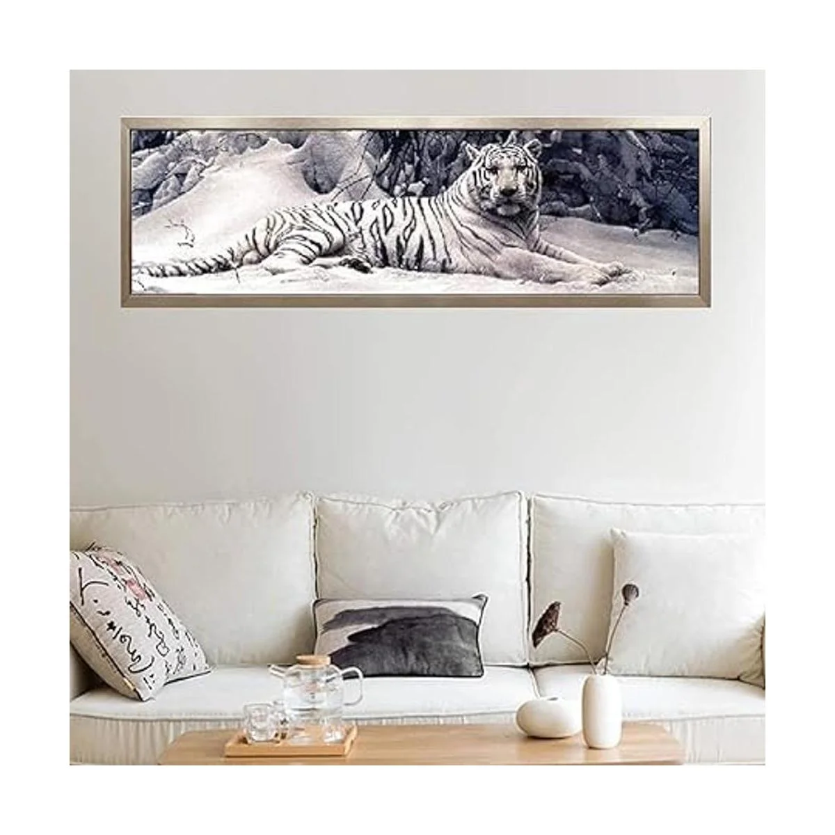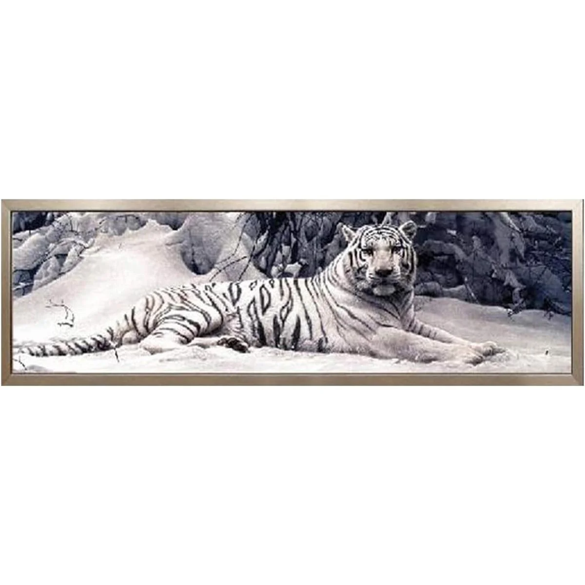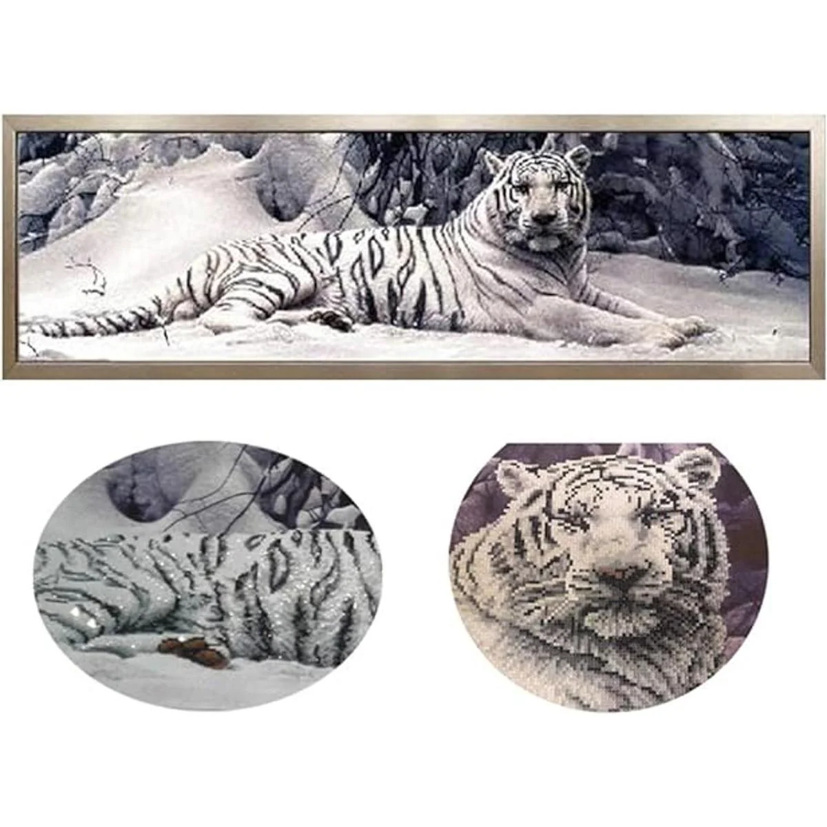 DIY 5D Diamond Painting by Number Kits, Crystal Rhinestone Diamond Pinturas de bordado cuadros artes manualidades para el hogar decoración de pared, taladro parcial, tigre blanco 58,7 x 14,9 pulgadas
