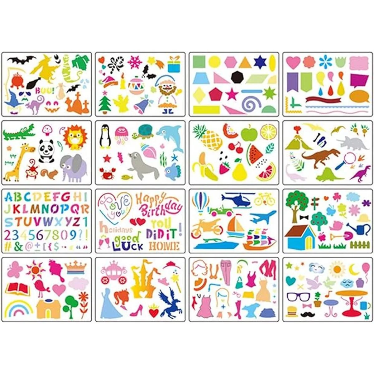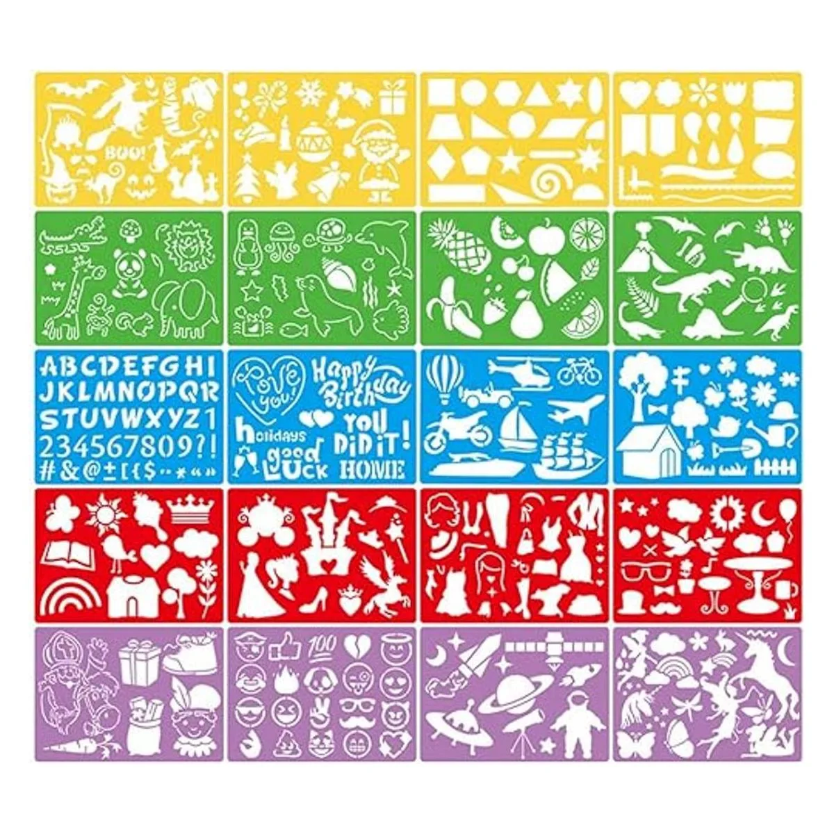 DIYASY Juego de 20 plantillas de dibujo para niños, gran plantilla de plástico, más de 300 plantillas de dibujo para niñas y niños.
