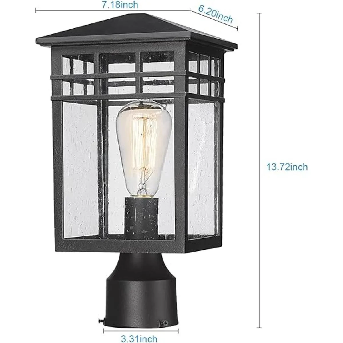 Fácil de instalar: Dimensiones: 7.2 x 6.2 x 13.7 pulgadas largo x ancho x alto; esta luz exterior para poste se puede montar en un pilar o columna, equipada con una base de montaje de 3 pulgadas de diámetro no incluida. Todos los accesorios de instalación necesarios están incluidos en la luz del pilar exterior para una instalación rápida y fácil.