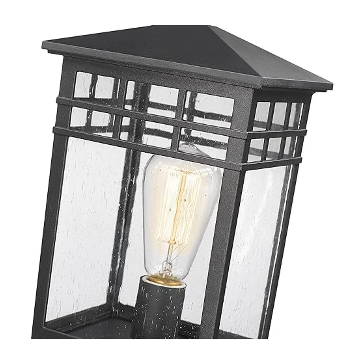 Resistente a la intemperie y duradera: la linterna de poste para exteriores adopta material resistente y duradero a prueba de óxido y pantalla de vidrio semillado, que puede soportar condiciones climáticas extremas, ya sea una tormenta de lluvia, tormenta de nieve, calor u otros climas extremos, después de años de uso, seguirá siendo funcional como nuevo, lo que es una buena inversión para la decoración del hogar.