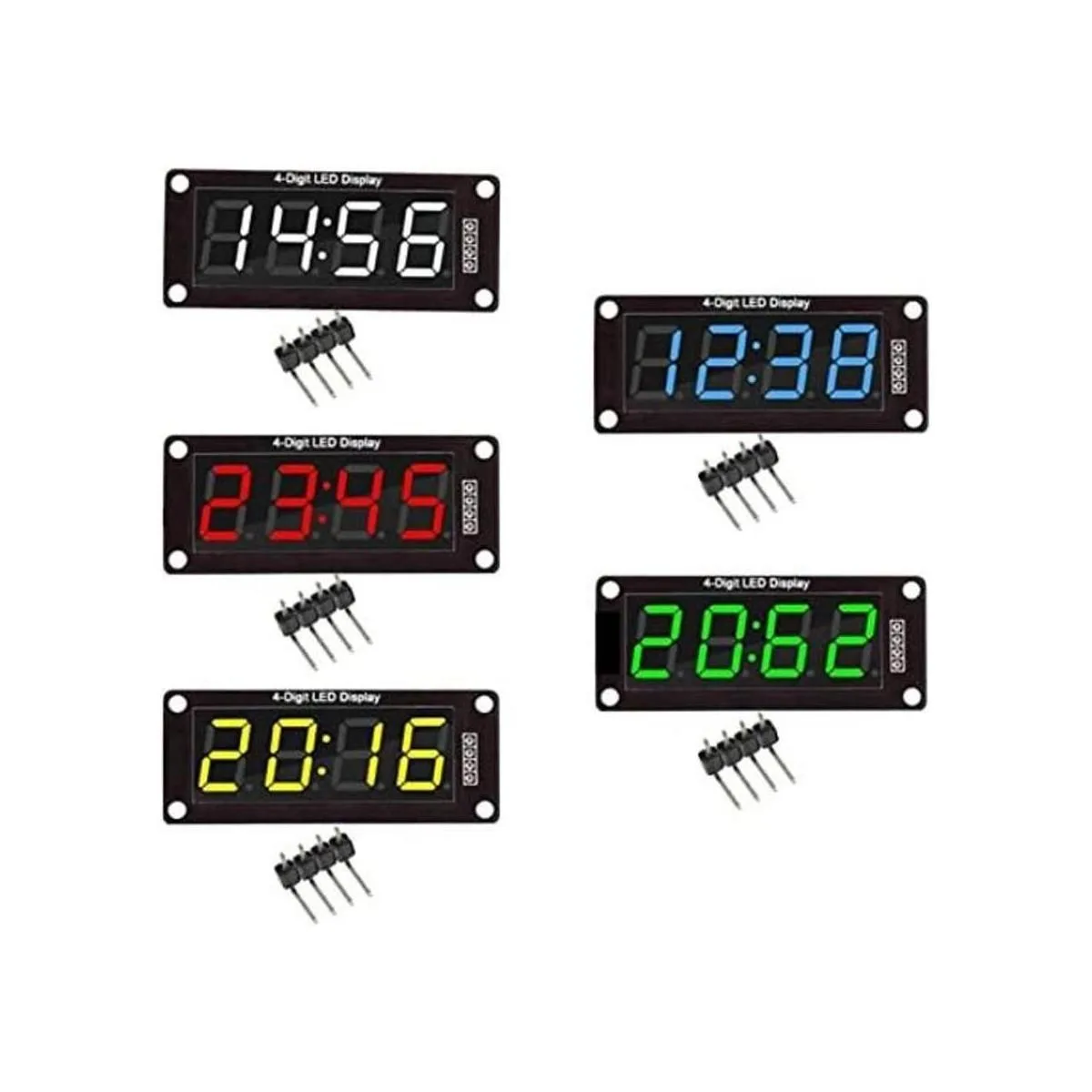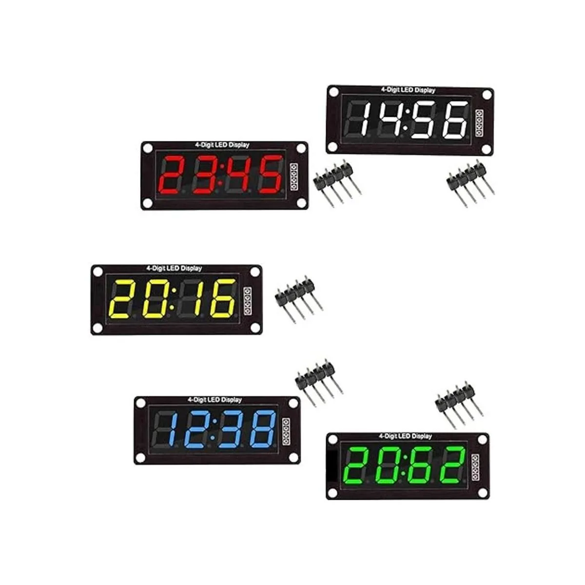 diymore Paquete de 5 unidades de colores rojoverdeblancoamarilloazul TM1637 de 0.56 pulgadas, tubo digital decimal de 7 segmentos, reloj de 2 dígitos, módulo de doble punto, placa de controlador serie 5 colores