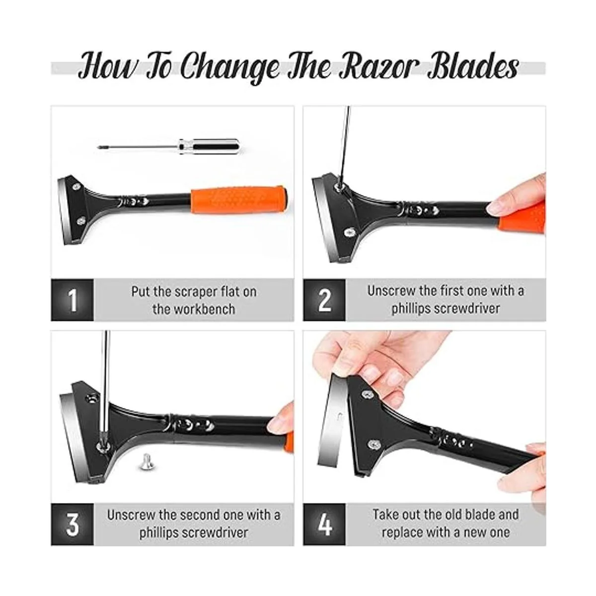 Herramienta raspadora ideal para ti: recibirás un juego de raspadores de afeitar con 10 cuchillas de repuesto. El rascador de mango largo resistente se puede utilizar en casa o en el trabajo. DIYSELF se compromete con el diseño de herramientas manuales de alta eficiencia. Si te gusta, sigue DIYSELF para obtener más productos de primera calidad