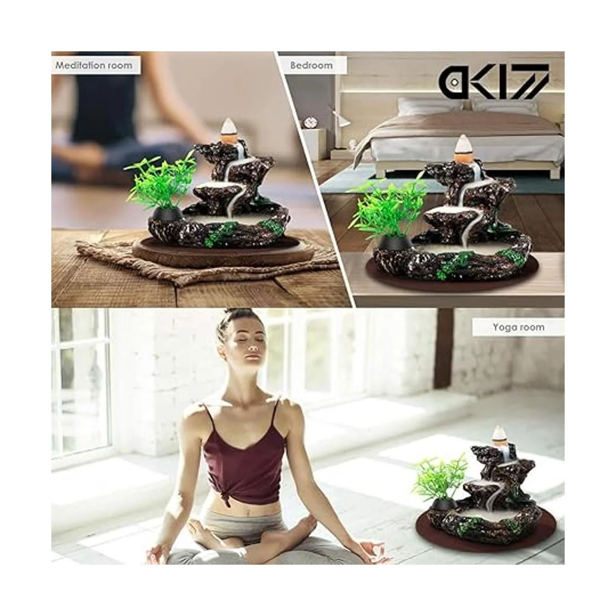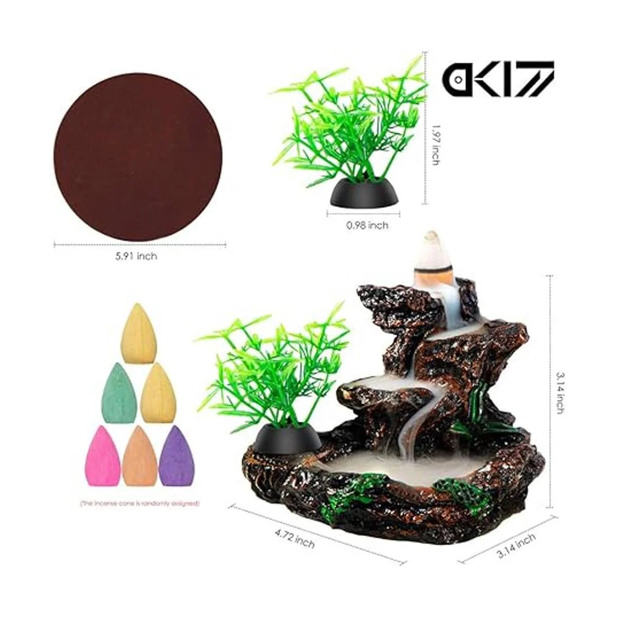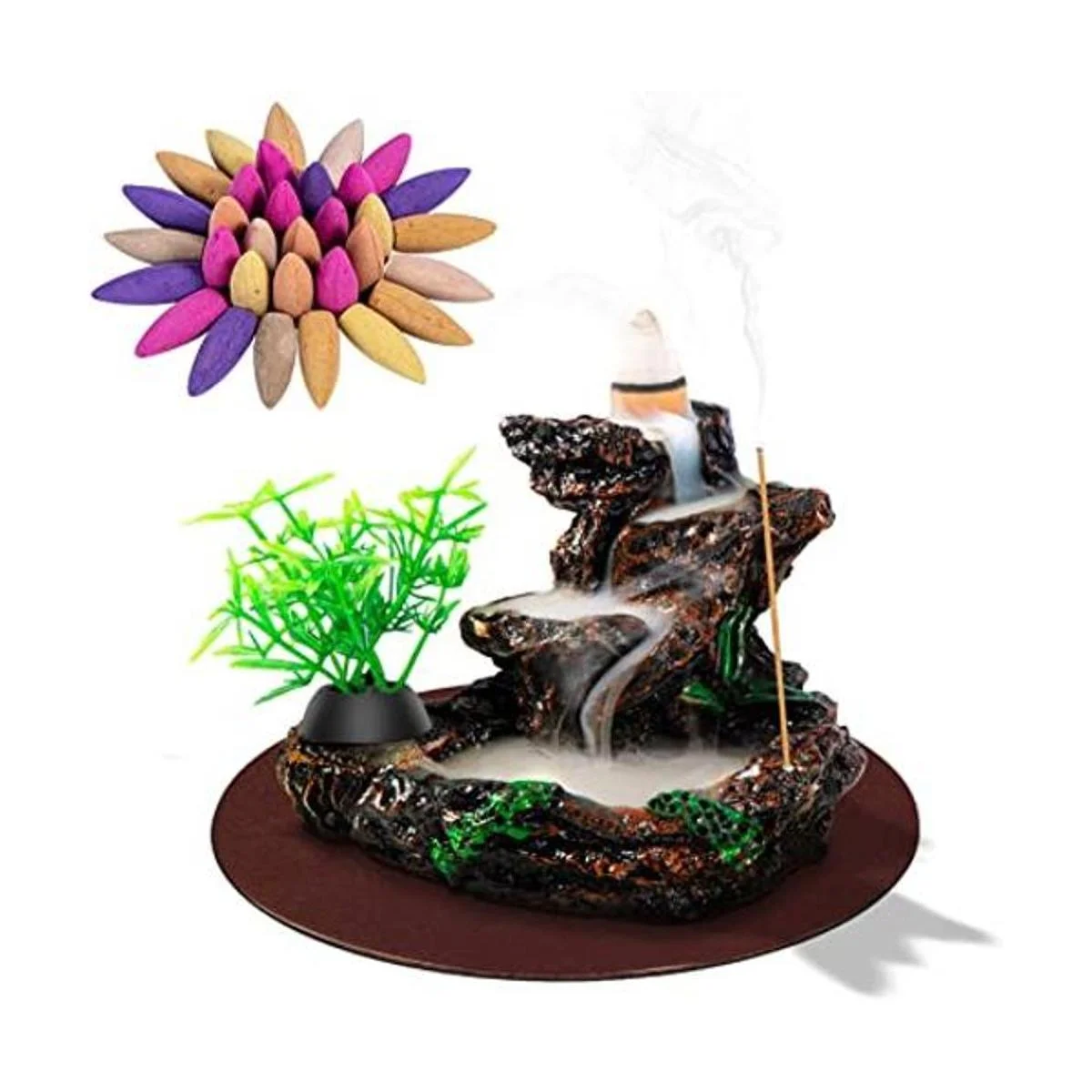 DK177 Soporte para incienso, quemador de incienso de cascada, reflujo de cerámica, fuente de incienso zen, difusor de máquina, quemador, soporte de cono para aromaterapia espiritual, juego de regalos para decoración del hogar con 20 conos