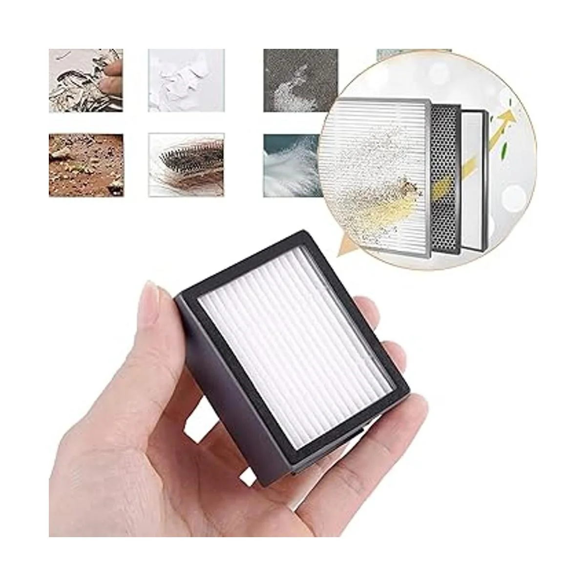 Tecnología de filtrado altamente eficiente: dos cepillos de eliminación de desechos sin enredos de alta calidad están perfectamente combinados para atrapar alimentos, pelo de mascotas, etc. El innovador cepillo lateral puede penetrar profundamente en esquinas y bordes para eliminar más residuos de cabello. El filtro limpio puede bloquear otras partículas tan pequeñas como 0,3 micras.