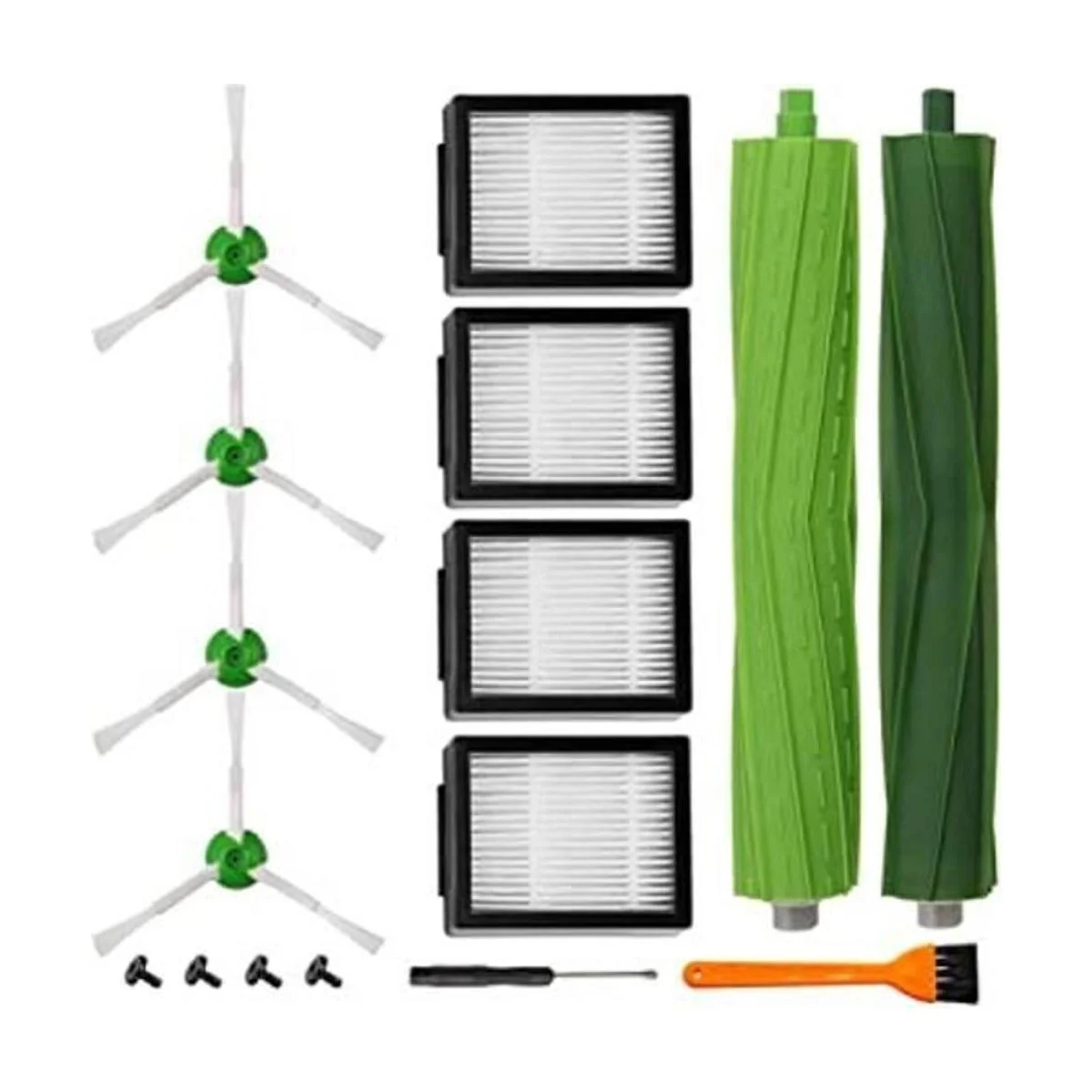 Paquete valioso: incluye 1 juego de cepillos de goma dobles multisuperficie y 4 filtros de alta eficiencia y 4 cepillos de barrido de bordes. Los productos están hechos de materiales de alta resistencia y respetuosos con el medio ambiente para garantizar un rendimiento óptimo y un estilo de vida más saludable.