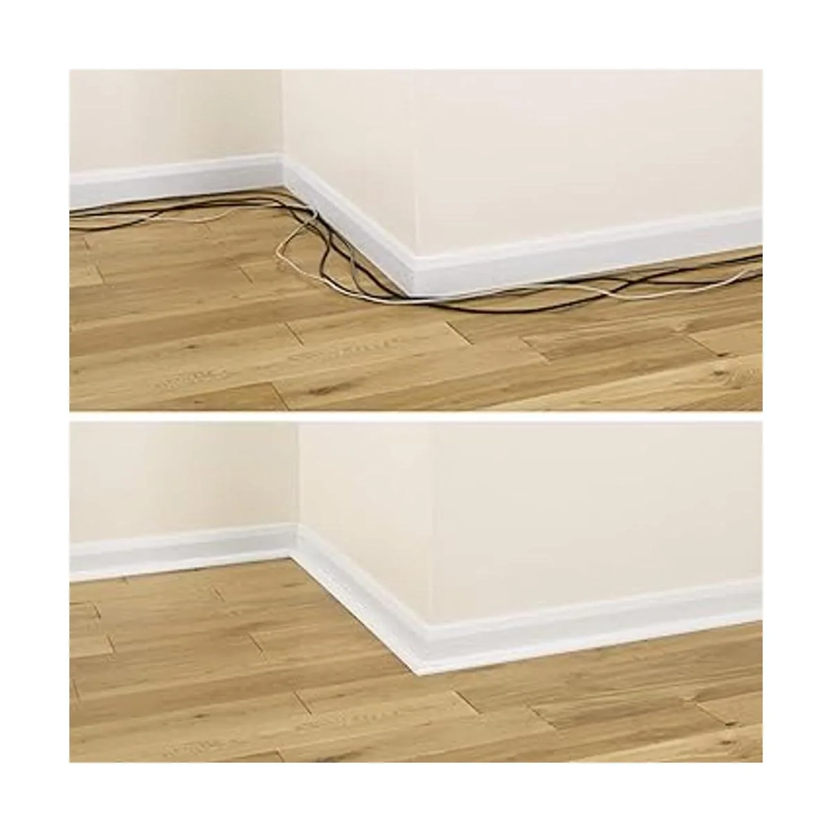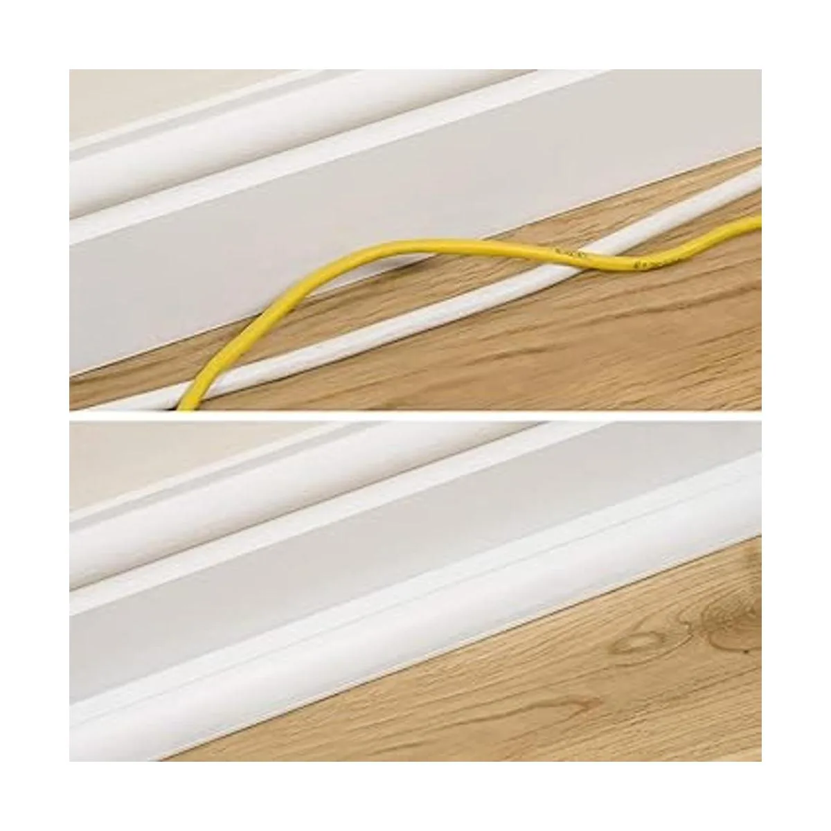 DLine Canal de cable redondo blanco de 39 pulgadas, cubierta de cable de esquina, moldura de suelo autoadhesiva con canal de alambre, escondedor de cable de placa base 0.87 pulgadas de ancho x 0.87 pulgadas de alto x 39 pulgadas de largo, blanco
