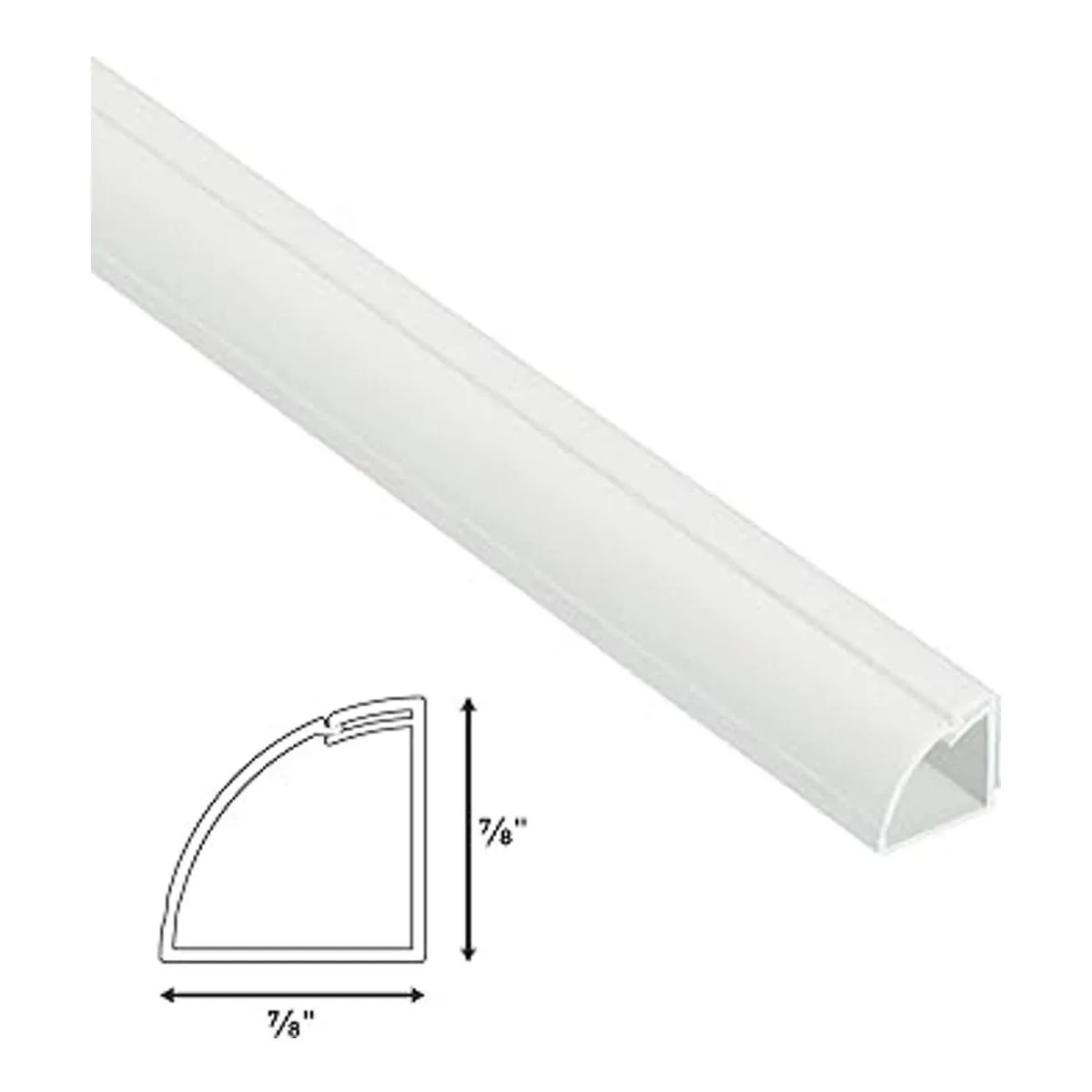 Las dimensiones de 0.87 x 0.87 pulgadas ancho x alto cuarto redondo escalan bien para mezclarse con zócalos populares, mientras que proporcionan capacidad para cables doblados alrededor de las esquinas, ideal para cubrir cables en bancos y encimeras también.