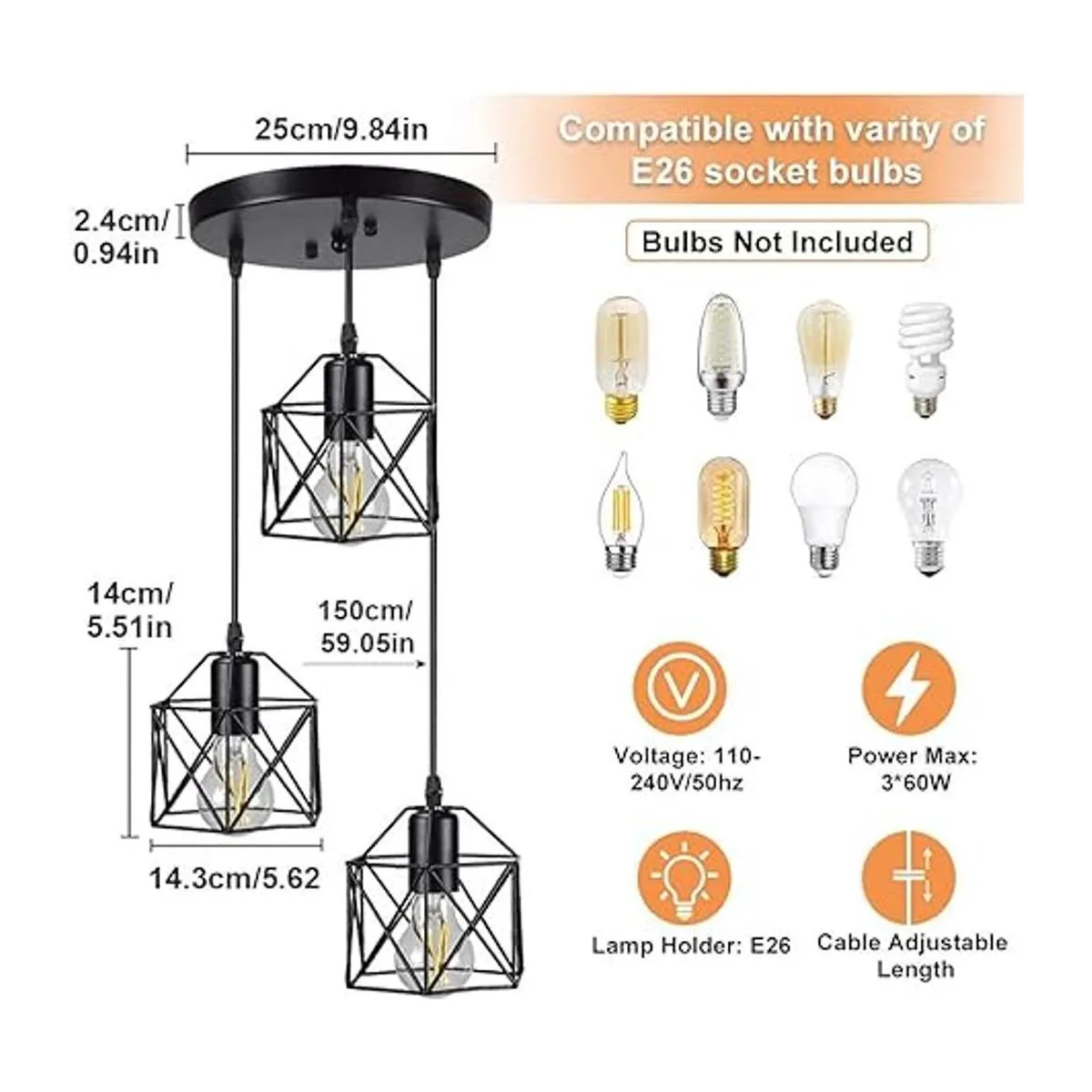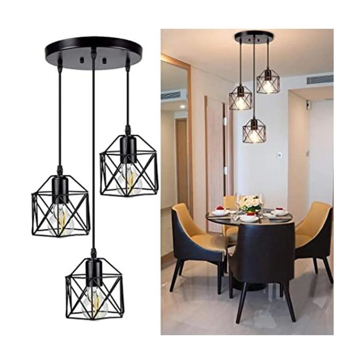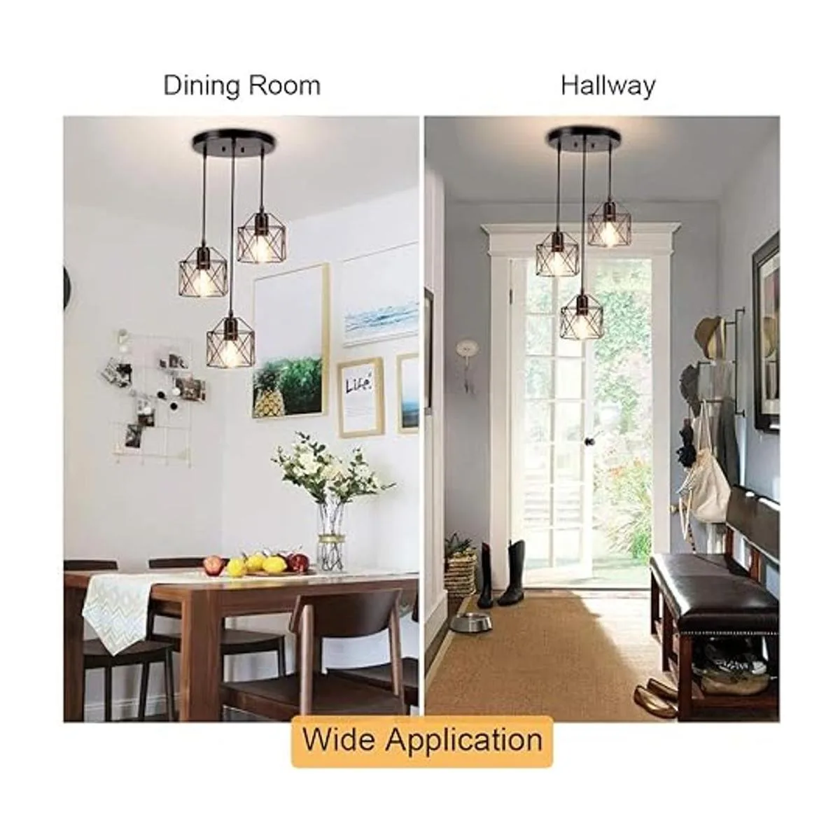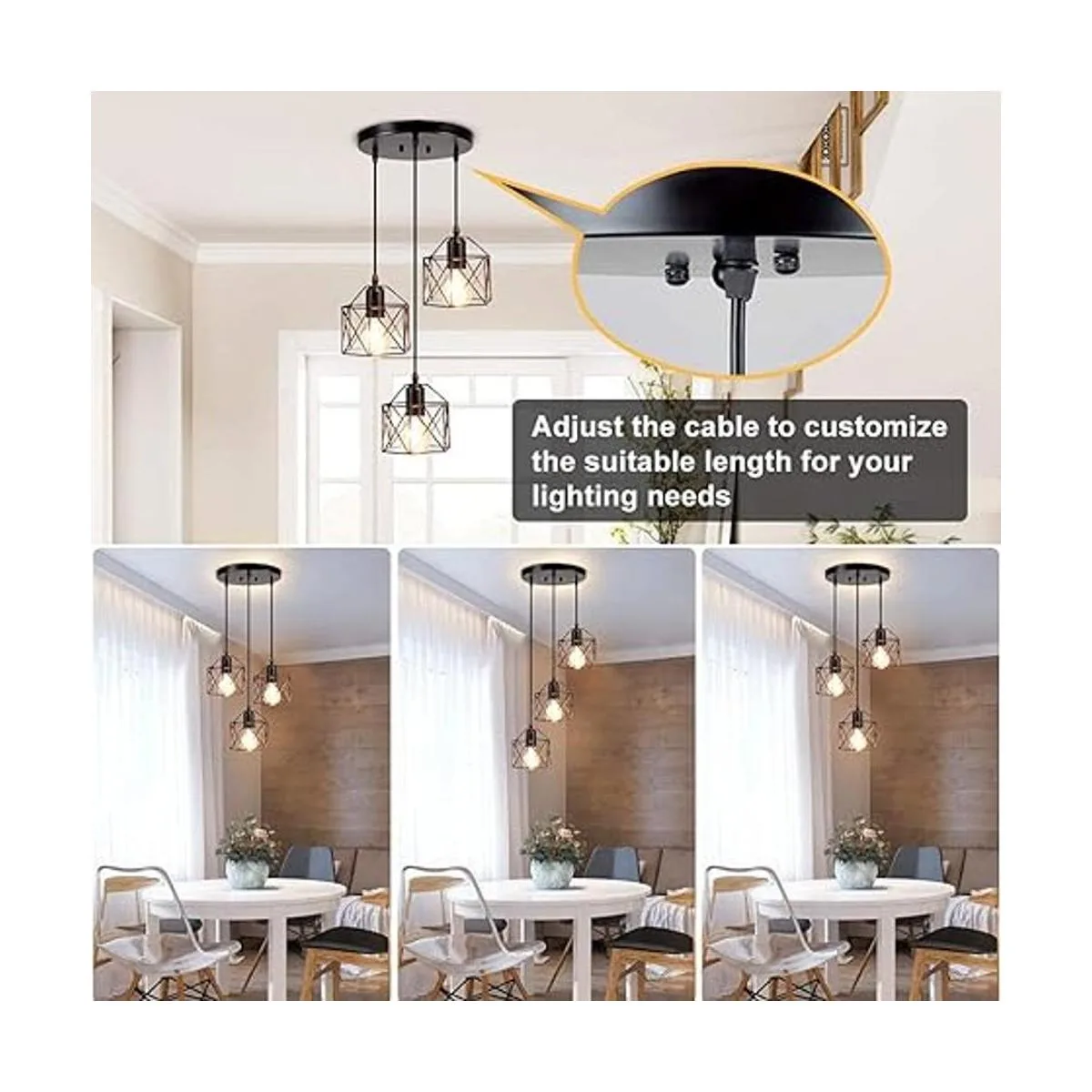 DLLT Lámpara colgante vintage, mini lámpara colgante ajustable con sombra de jaula de 3 luces, iluminación de techo empotrada para cocina, comedor, pasillo, dormitorio, base E26 negro