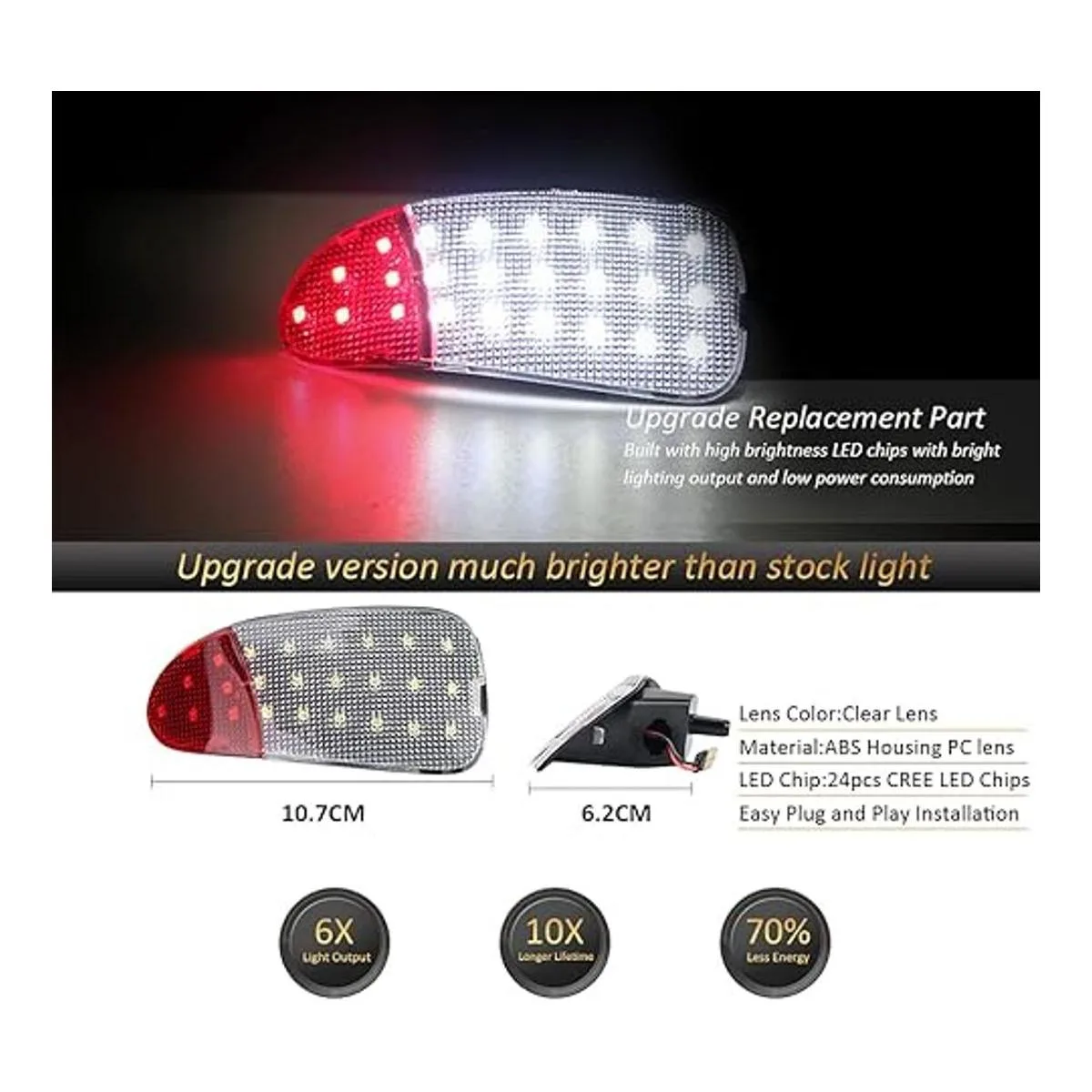 6 veces más brillante que la luz de stock: construido con chips LED 100 avanzados de alto brillo con salida de iluminación de intensidad y bajo consumo de energía, que es 6 veces más brillante que las bombillas de fábrica, mejora la iluminación en el entorno de la puerta y la seguridad para la cama de tu camión por la noche. Pieza de repuesto de actualización directa para reemplazar la antigua o defectuosa lámpara interior de puerta OEM.
