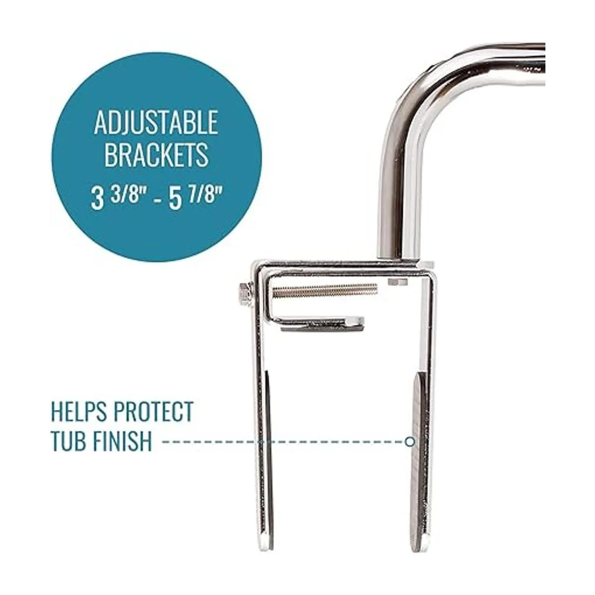 La barra de agarre cuenta con soportes ajustables que se adaptan a la mayoría de bañeras; los soportes se ajustan a 3 3/8 pulgadas a 5 7/8 pulgadas.