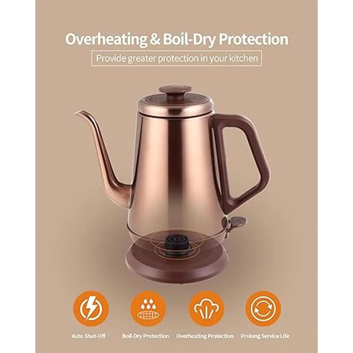 DmofwHi Hervidor eléctrico de cuello de cisne de 1360 W 1.05 cuartos de galón, Hervidor de té clásico 100 de acero inoxidable y sin BPA, con apagado automático de protección, hervidor para café y té, cobre