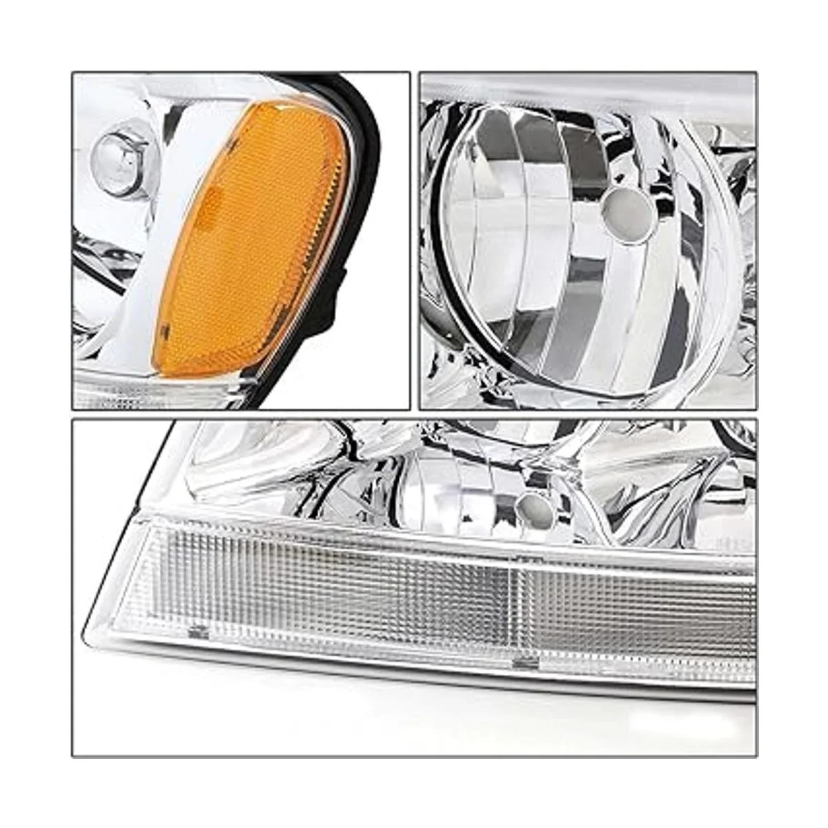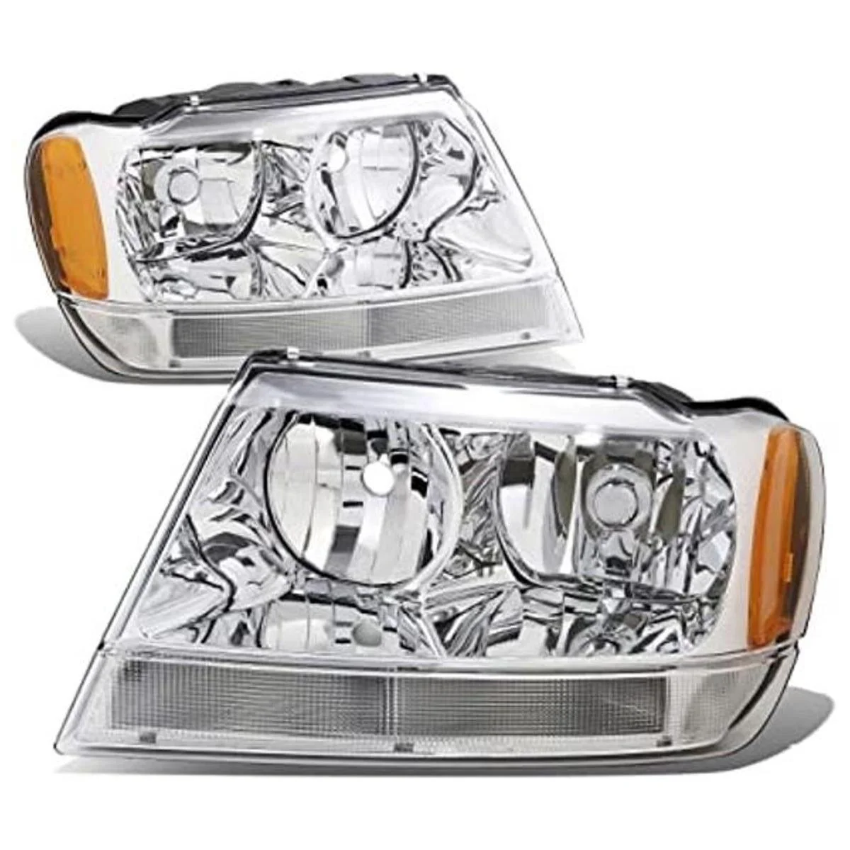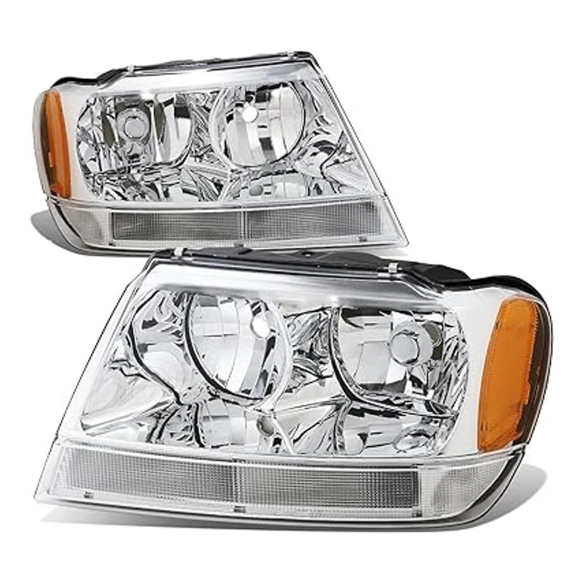 DNA Motoring HLOHJGC99CHAM Repuesto de montaje de faros delanteros cromados ámbar compatible con Jeep Grand Cherokee 9904