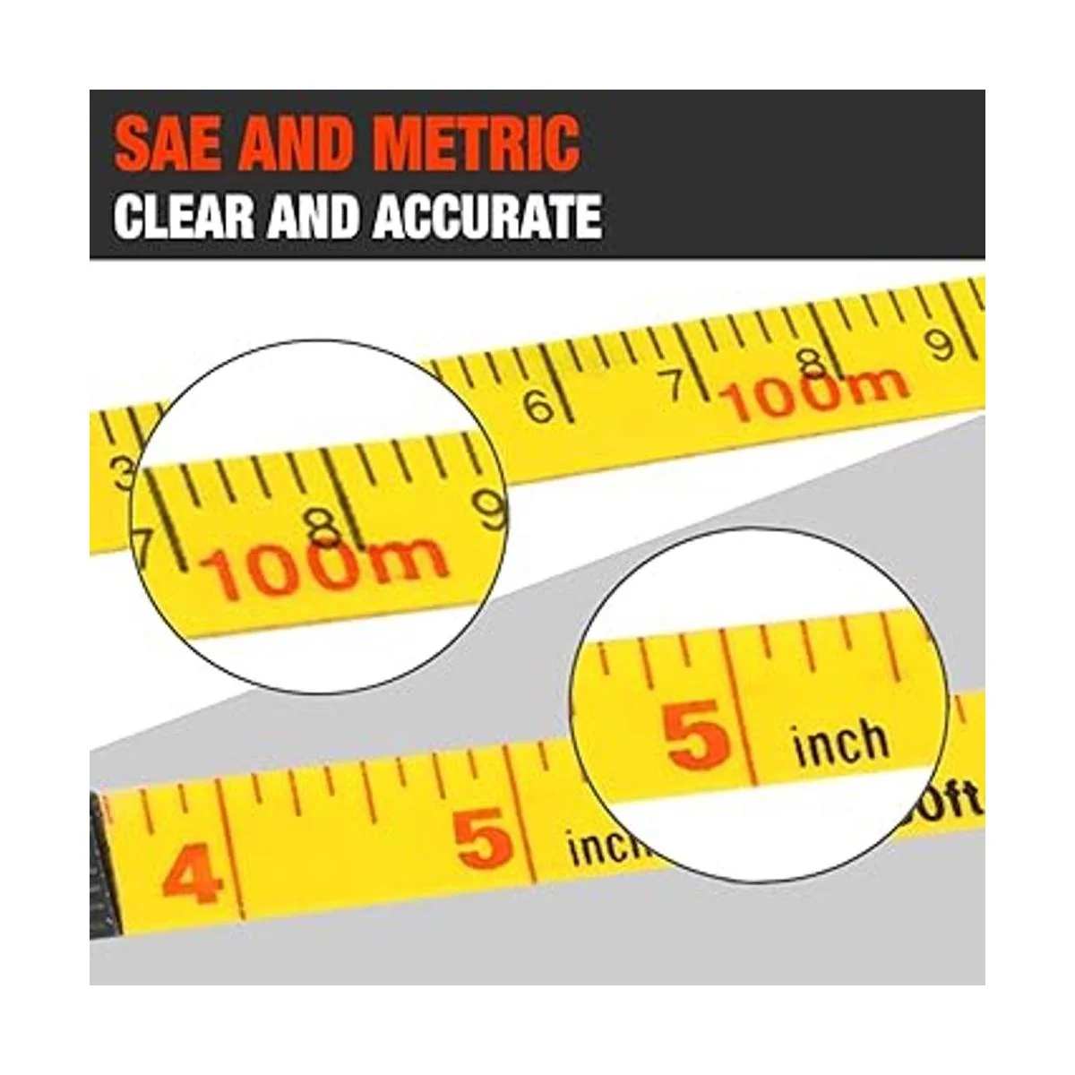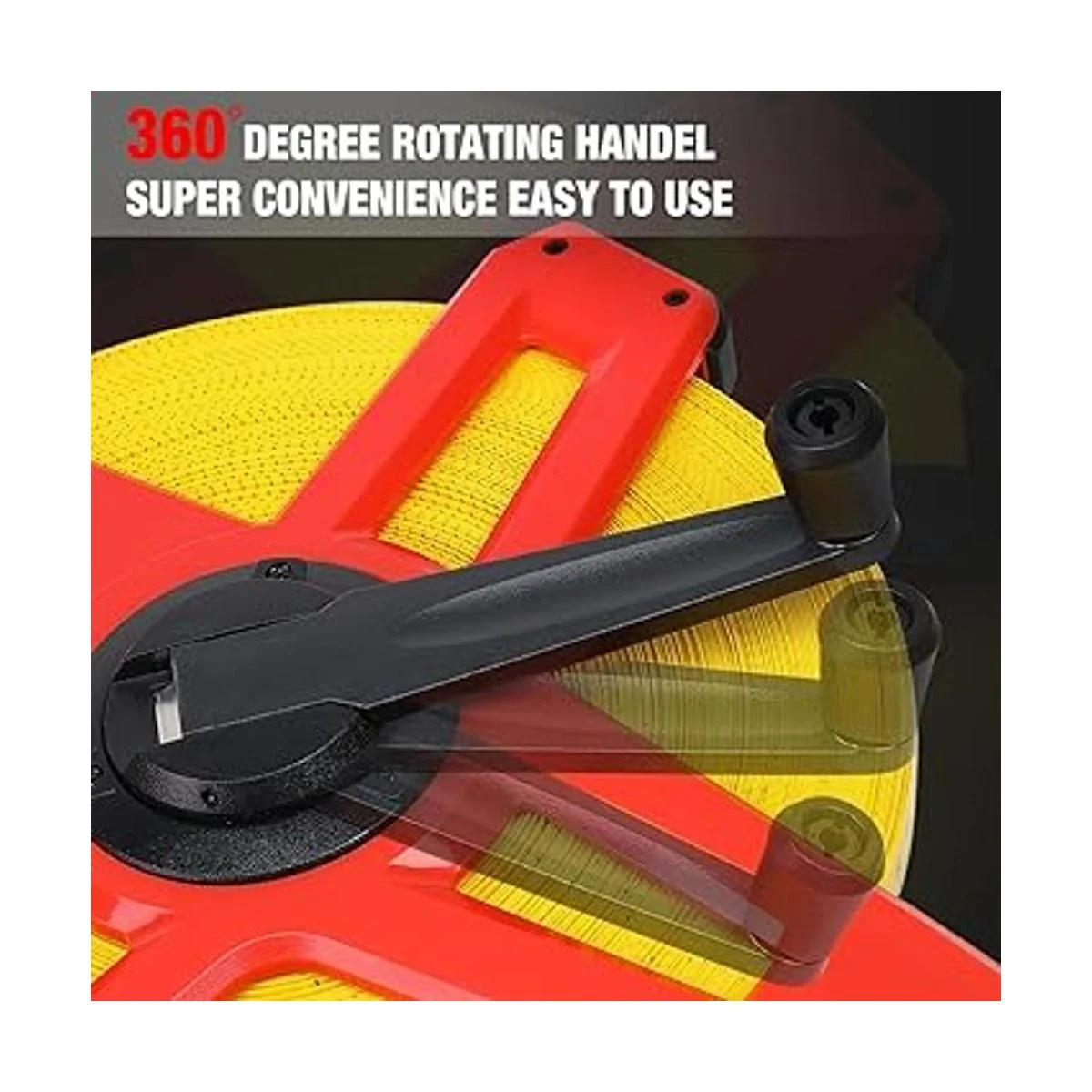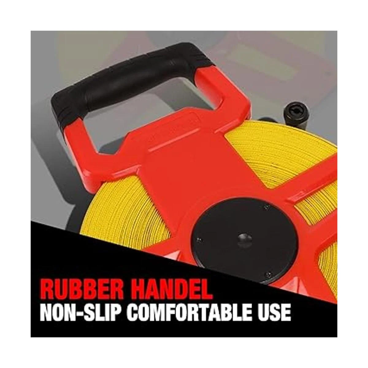 Distancia: este carrete de cinta métrica de fibra de vidrio incluye una cinta de 0.5 in de ancho que mide hasta 328.1 ft