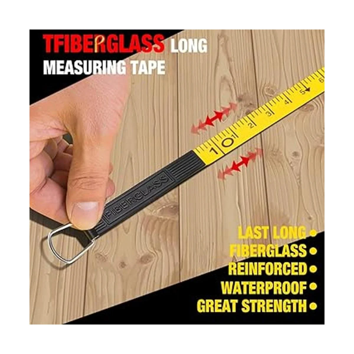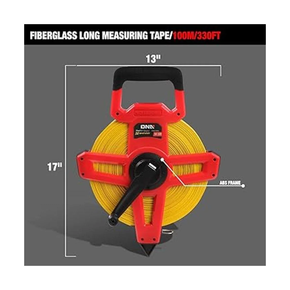 DNA Motoring TOOLS00042 Cinta métrica de fibra de vidrio de grado contratista, kit de herramientas de medición de distancia, 1 carrete de 12 330 pies, naranjaamarillo