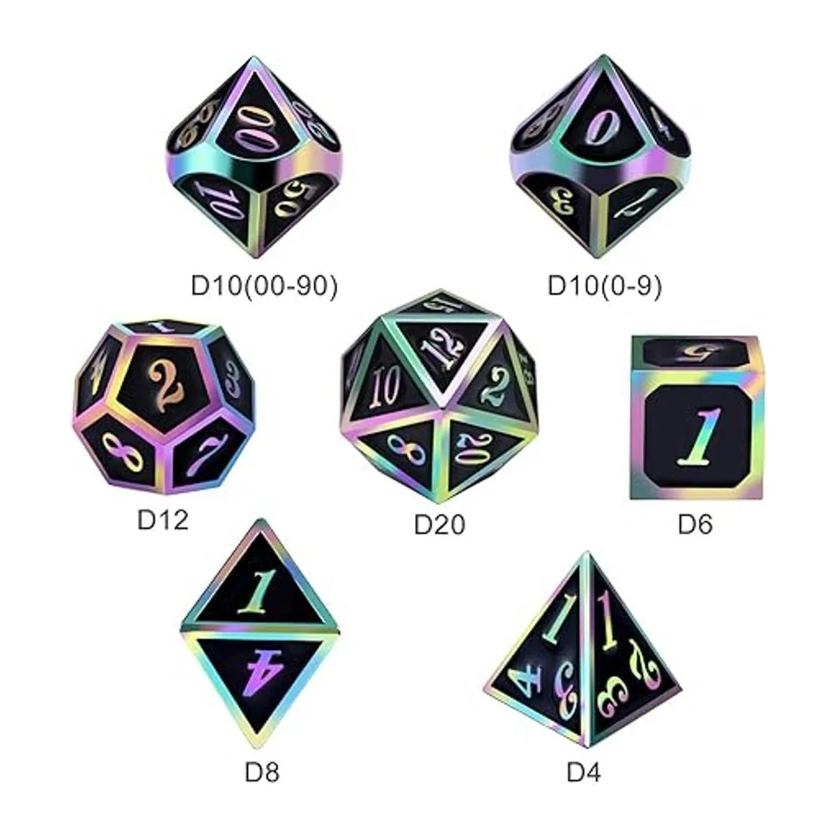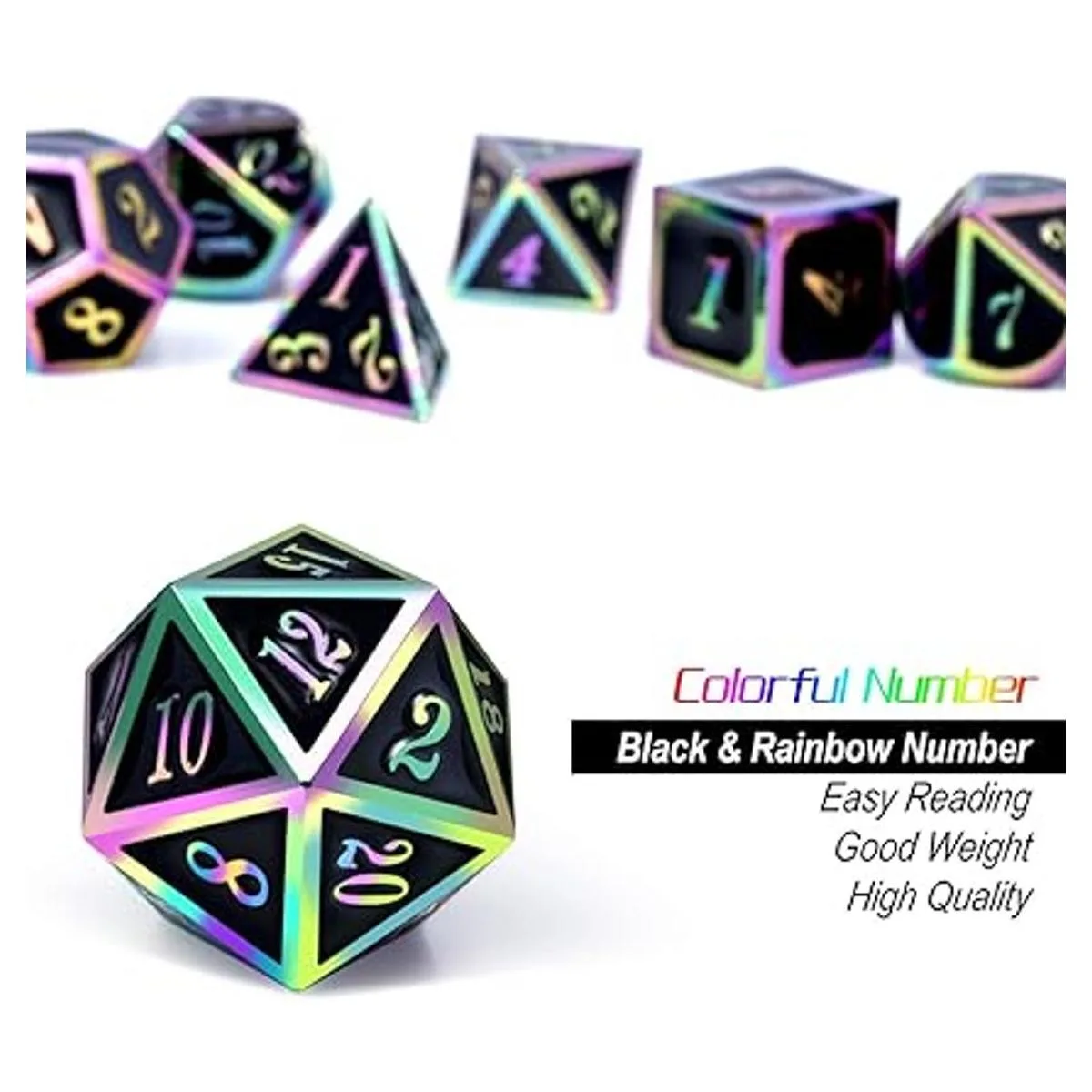 DND Juego de 7 dados metálicos, Número de arco iris con negro
