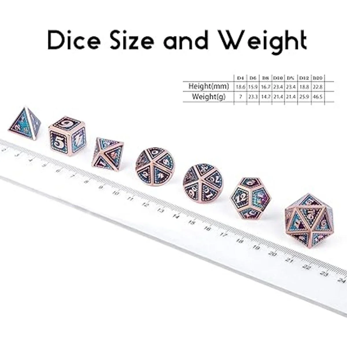 Peso neto: 4.24 onzas. Los dados son más pesados que un dado normal y tienen una sensación muy agradable al tacto.