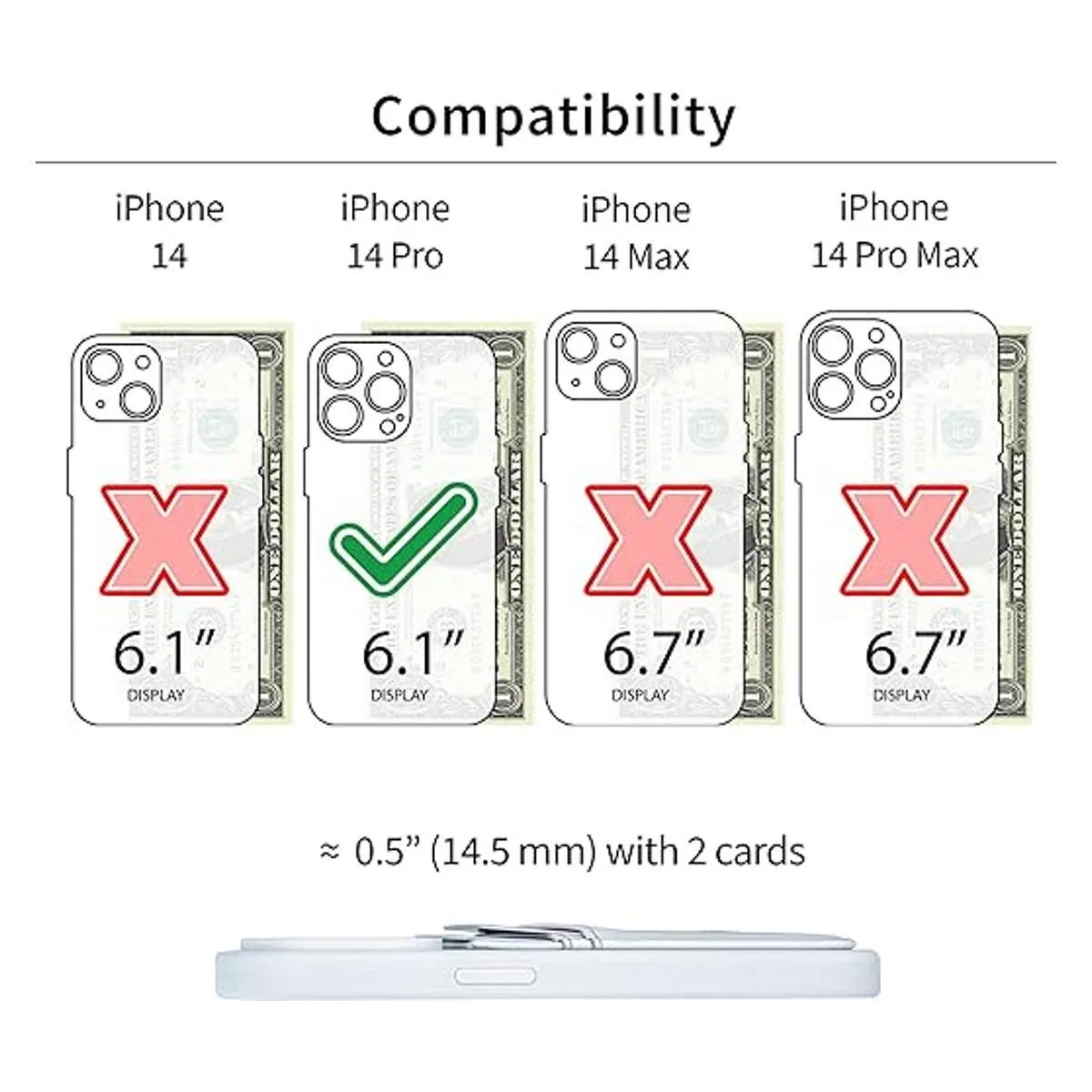 Solo para iPhone 14 Pro: mantén tus 2 tarjetas más importantes contigo en todo momento. Las tarjetas de crédito/débito no se desmagnetizarán dentro de la funda. No recomendamos más de 1 tarjeta por ranura para un mejor rendimiento y ajuste. Las tarjetas adicionales estirarán los bolsillos