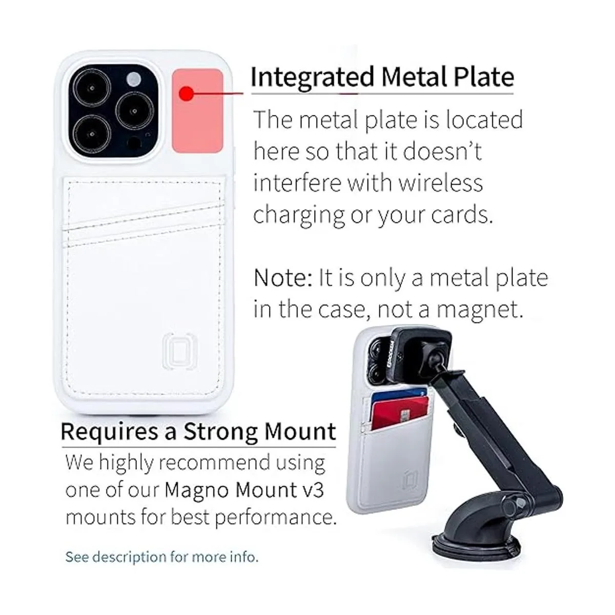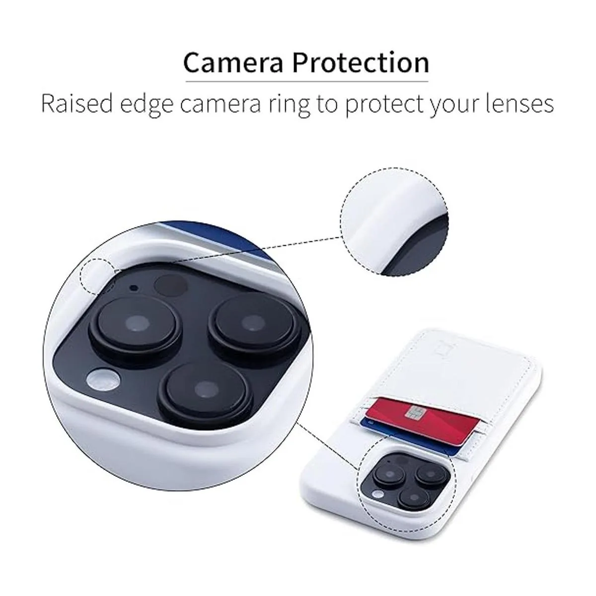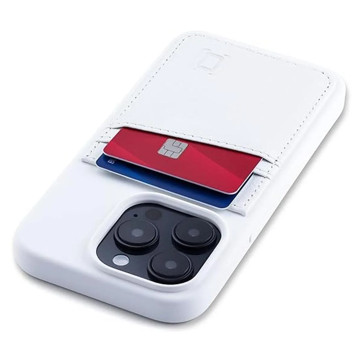 Dockem Funda para tarjetas para iPhone 14 Pro con carcasa de silicona líquida, placa de metal integrada para montaje magnético y cartera cosida con 2 ranuras para tarjetas de crédito de cuero sintético de alta calidad M2L, blanco