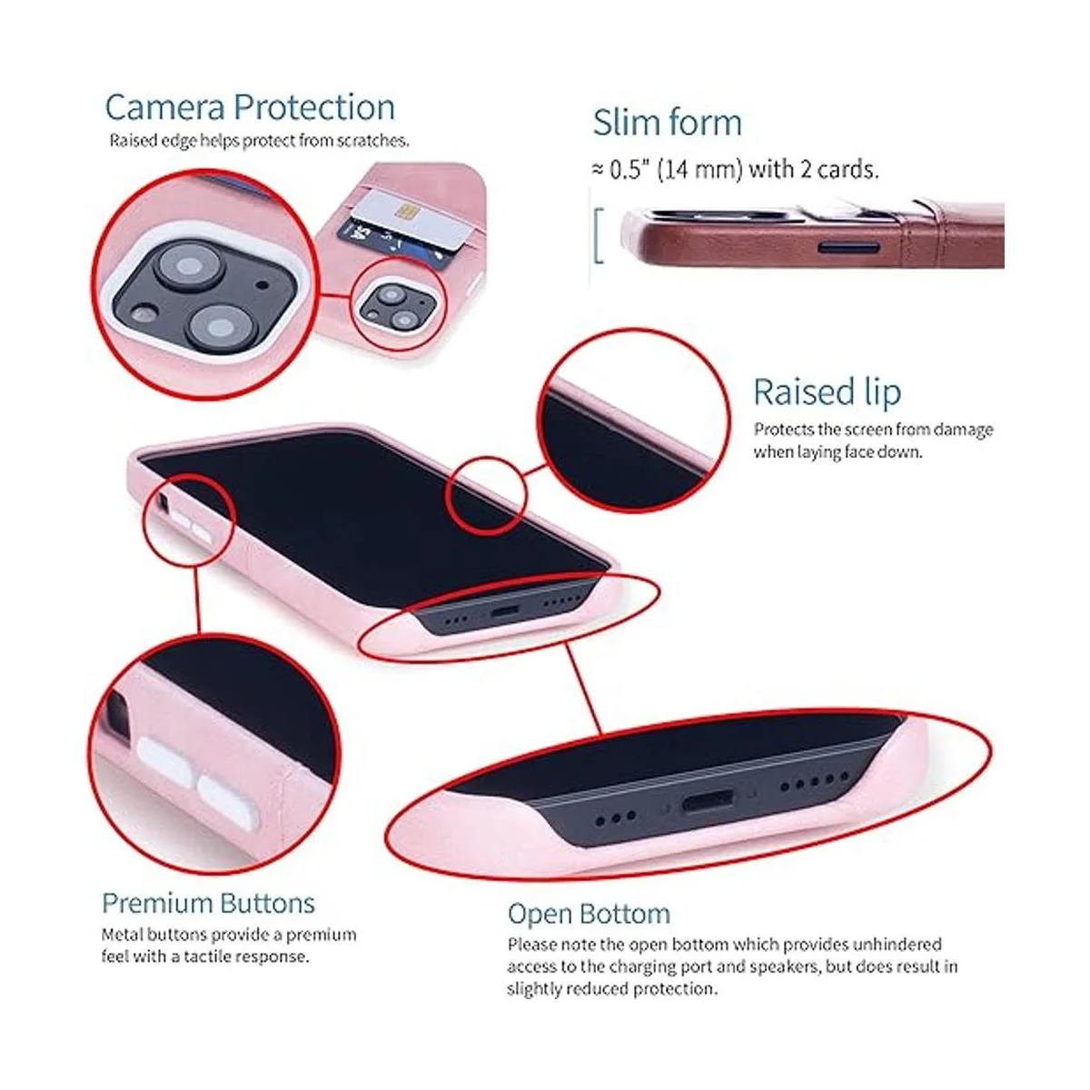 Dockem Funda tipo cartera para iPhone 13 con placa de metal integrada para montaje magnético y 2 bolsillos para tarjetero de crédito Exec M2, piel sintética de alta calidad iPhone 13 de 6.1 pulgadas, rosa