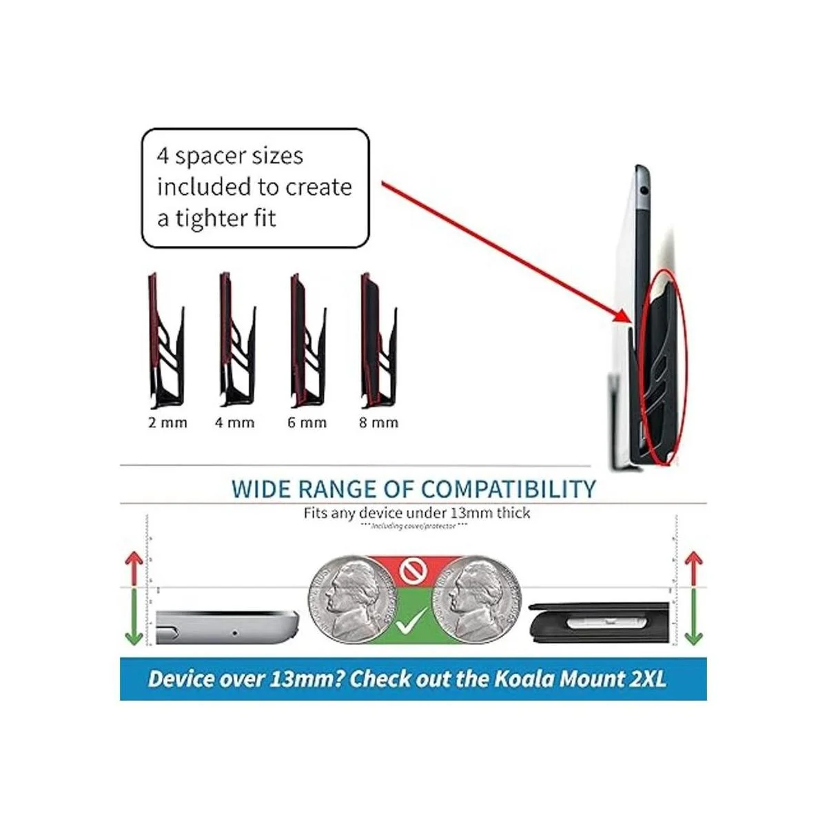 Dockem Koala Soporte de pared 2.0 base universal sin daños para smartphone, tablet, lector electrónico para iPad 1, 2, 3, 4, Air, Mini, iPad Pro, Samsung Galaxy TabNote, Google Nexus, Microsoft Surface negro