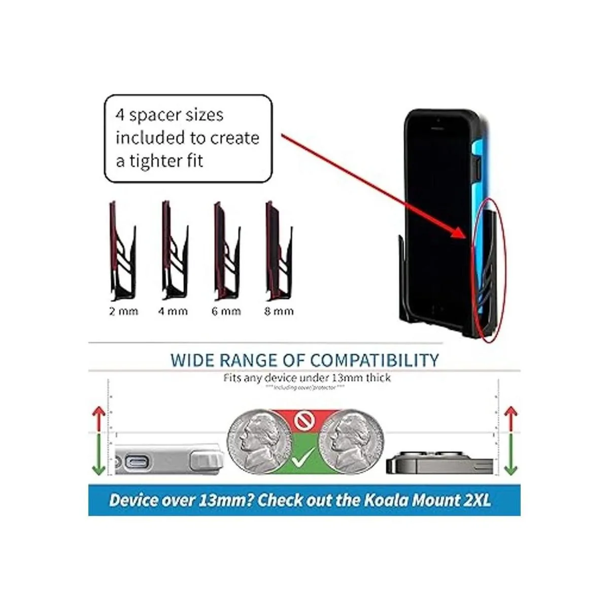 Perfecto para mesita de noche y cabecero: el Koala Mount 2.0 es perfecto para usar para cargar tu teléfono de forma segura en el dormitorio sin ocupar valioso espacio en la mesita de noche. Colócalo en el lateral de una mesita de noche, directamente en el cabecero o en la pared, para un cómodo punto de carga, reloj y alarma.