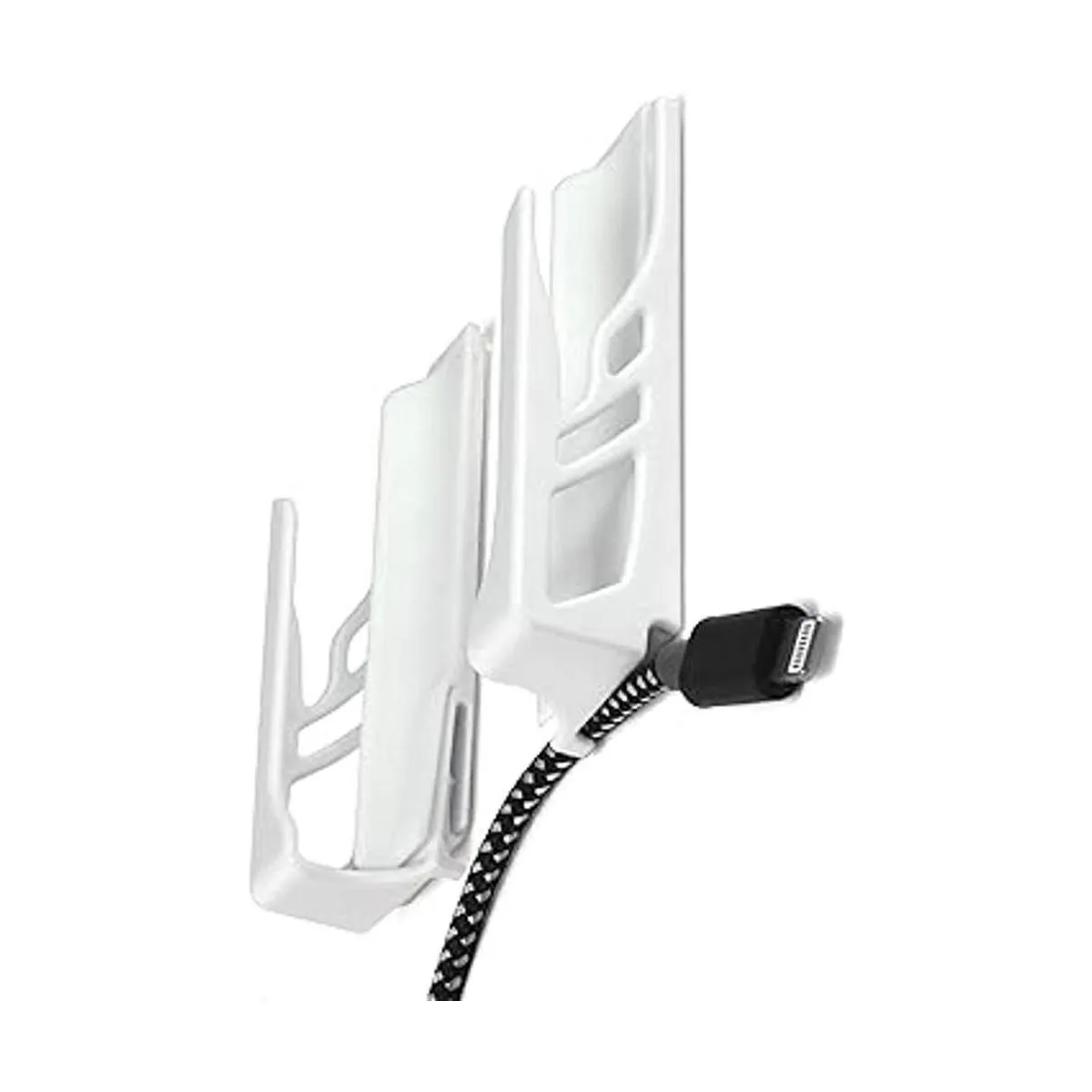 Clips de cable integrados: hay 2 estilos diferentes de clip de cable integrado en cada soporte. El clip lateral es un clip temporal que es muy fácil de usar y está diseñado para sujetar tu cable mientras el soporte no está en uso. El clip inferior es un clip semipermanente diseñado para sujetar tu cable en todo momento.