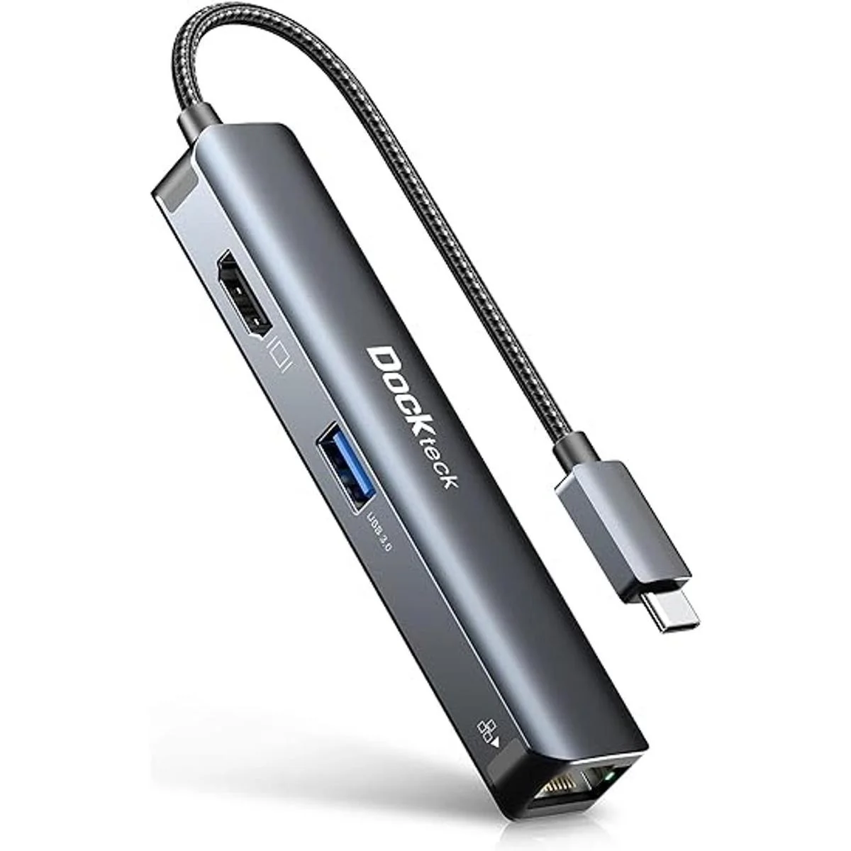Dockteck Hub USB C Ethernet, adaptador multipuerto USBC 5 en 1 con USB C a 4K HDMI, LAN de 1 Gbps, 3 USB 3.0, para MacBook Air Pro, iPad Air Pro, Surface Pro, XPS y más