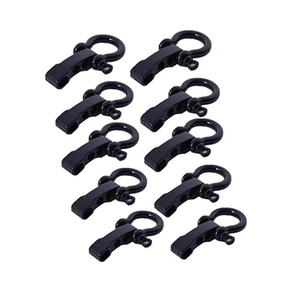 DODXIAOBEUL 10 juegos de grillete de arco, grillete de anillo D, hebilla ajustable de cuerda de paraguas, hebilla de grilletes D ajustable, hebilla de cuerda para paraguas, hebilla en forma de U, tornillo de anclaje grillete de anclaje, no se desvanece negro
