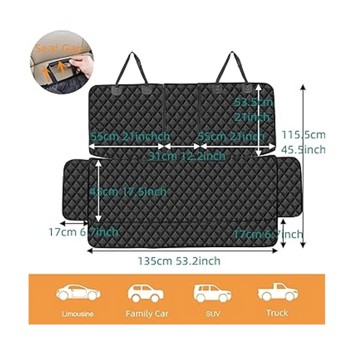 2.All Round Protection :Protect your car from sand,dirt,fur,hair,foot print,wet sweat and wet kids you know .This back seat cover for pet not only protecting your car but also protecting your lifehood.