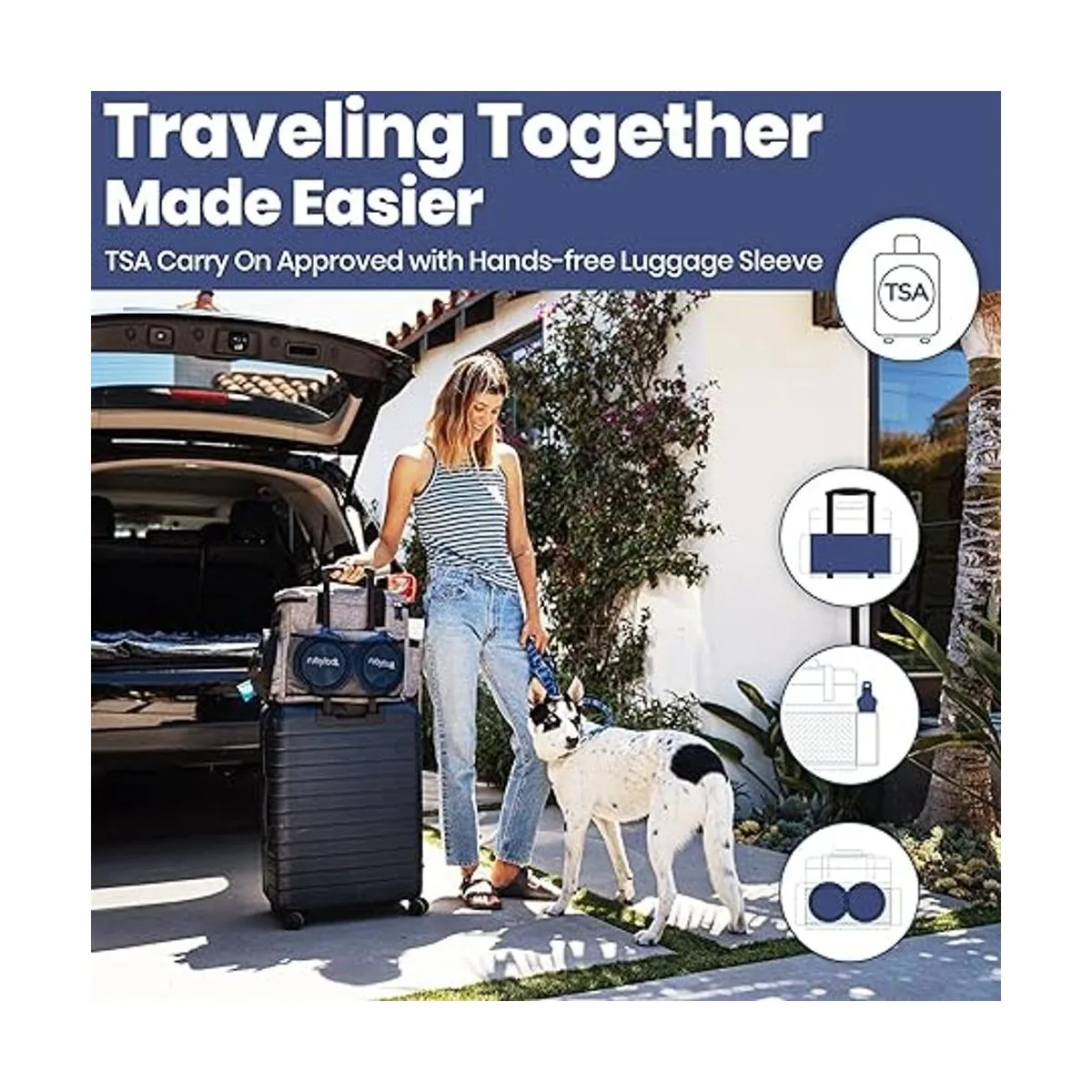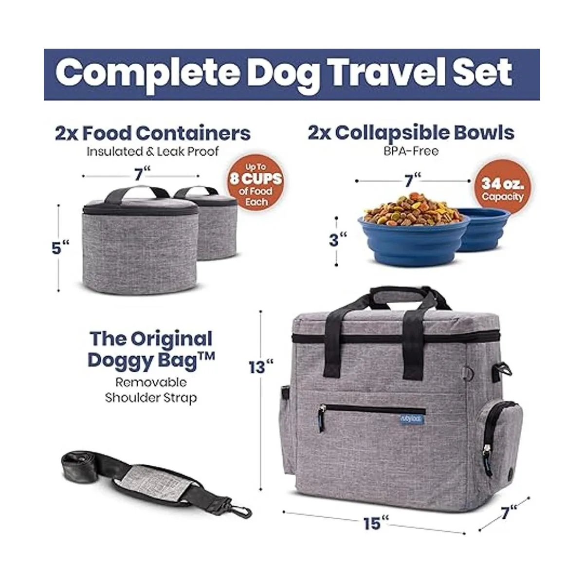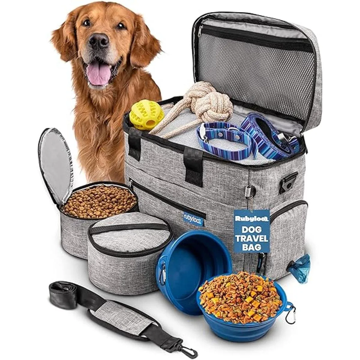 Dog Travel Bag for SuppliesAirline Approved Pet Travel Organizer with MultiFunction Pockets, Plus 2 BPAFree Collapsible Dog Bowls, 2 Dog Food Travel ContainersDog Travel Kit for a Weekend Away