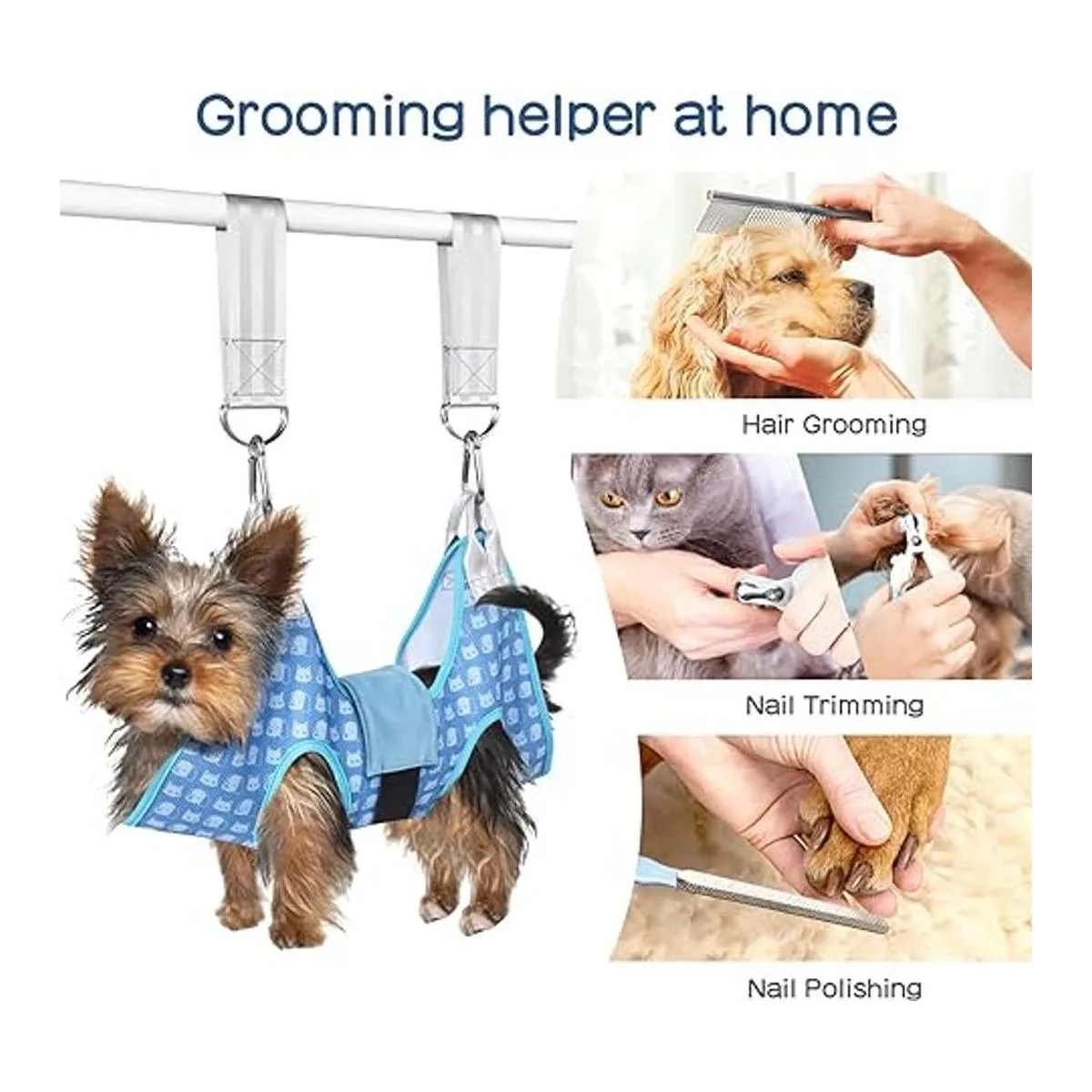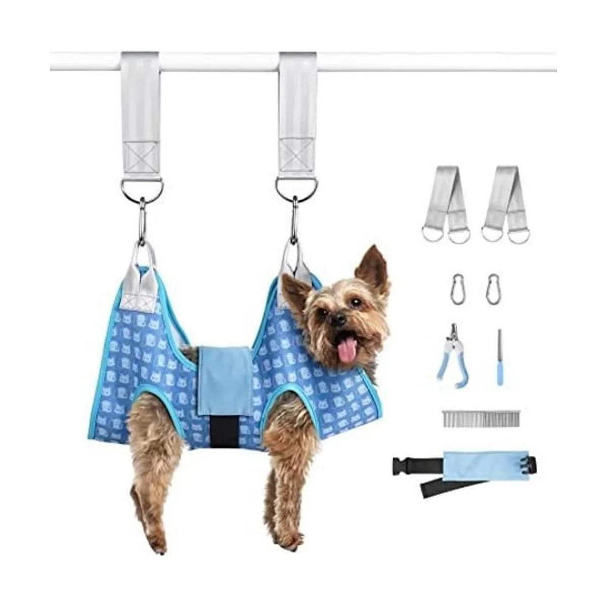 DoggyDobby Hamaca de aseo de mascotas para perros y gatos, arnés de hamaca de aseo de perros con cortaúñascortaúñas, lima de uñas y peine, correa para perro para recortarrecortar uñas