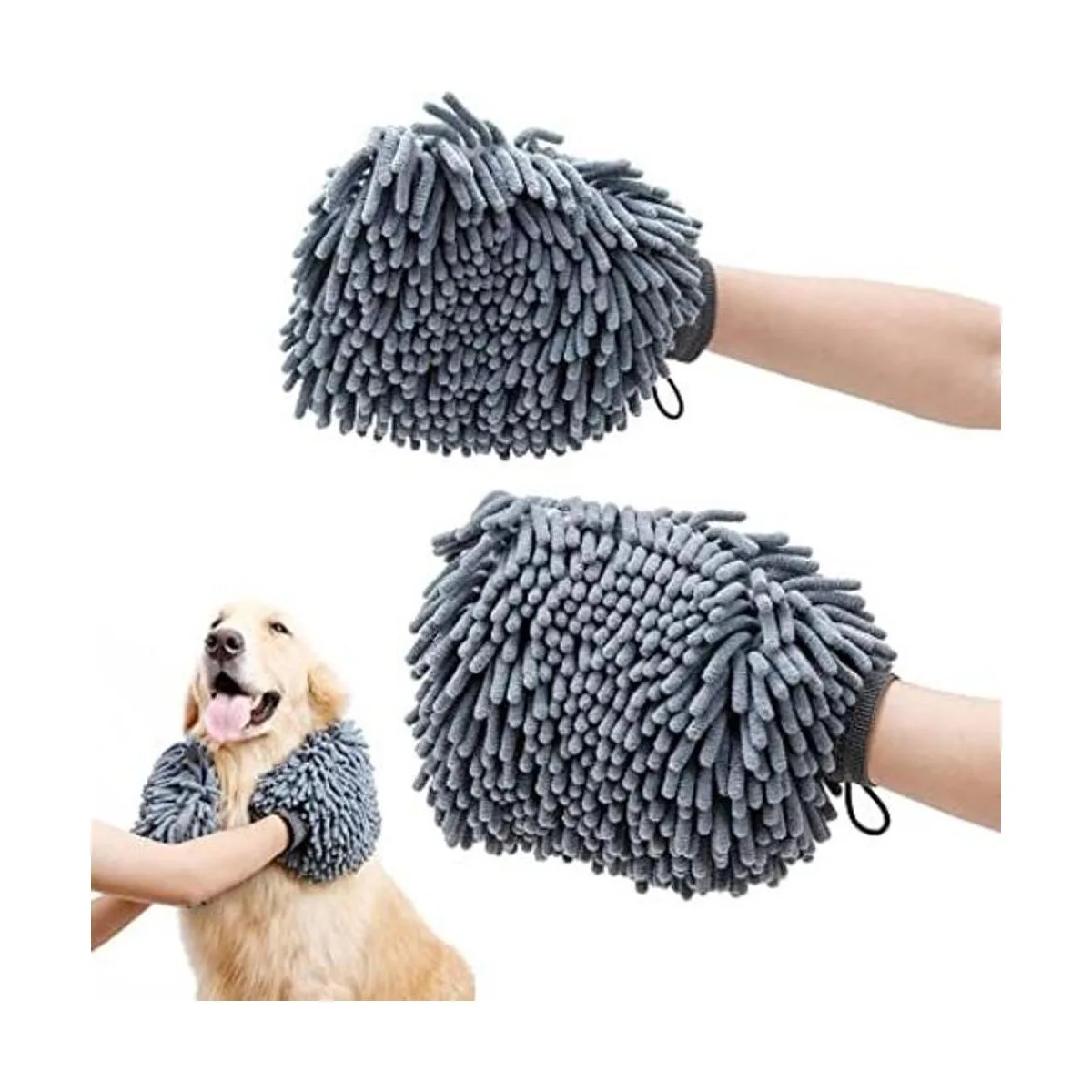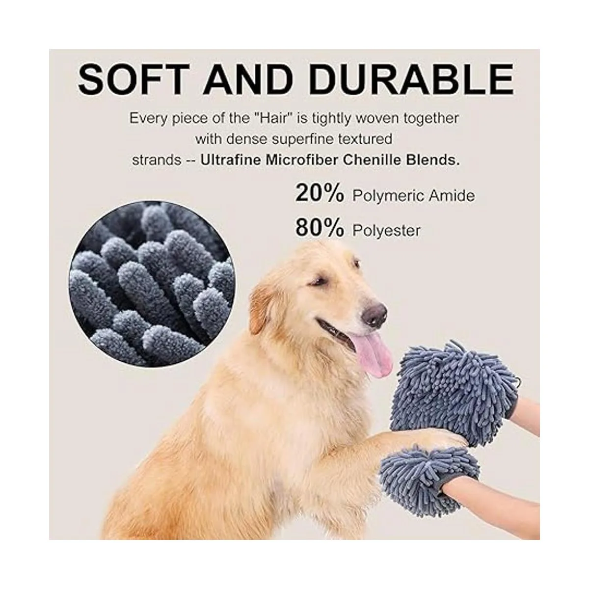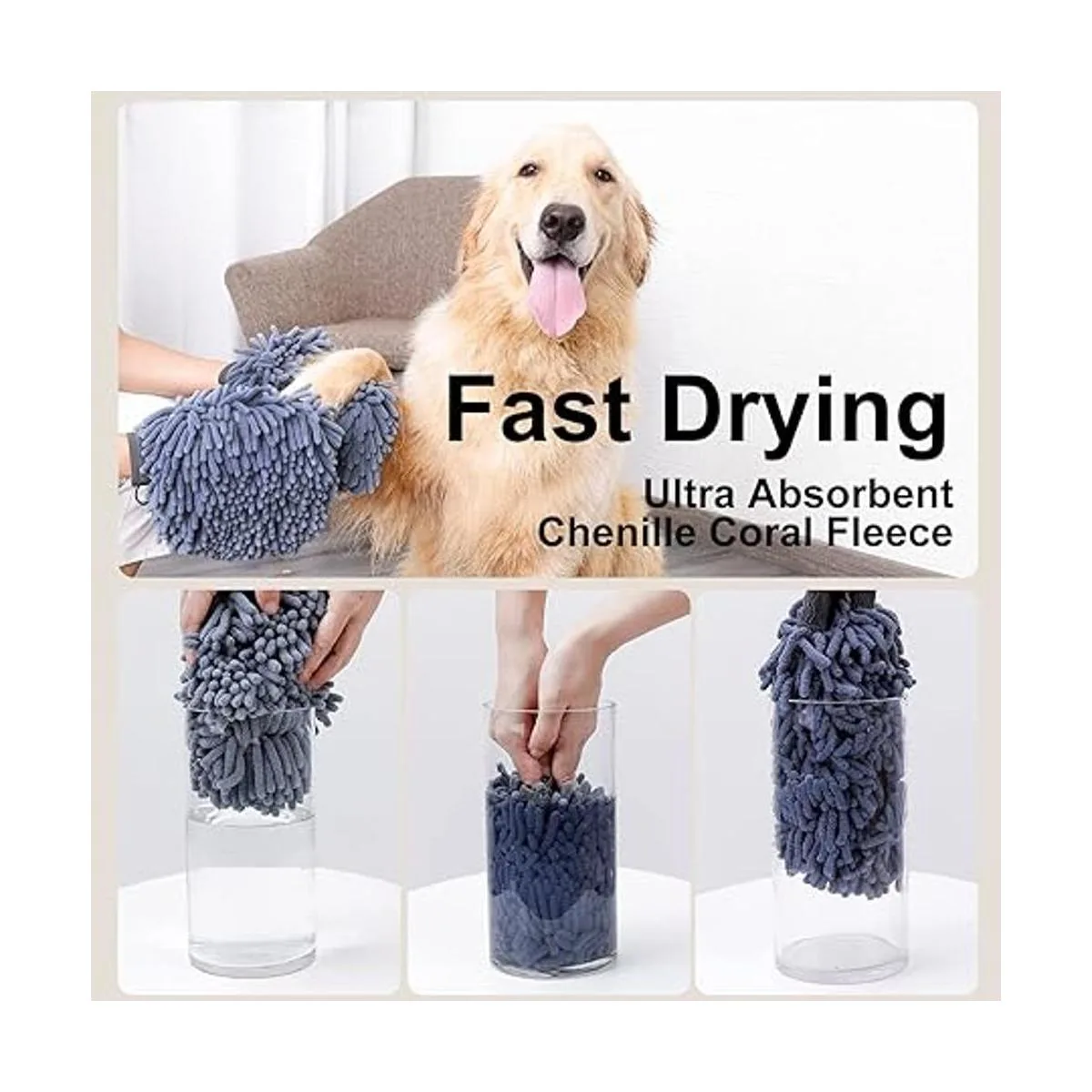 DogLemi Guante de toallas para perros, toalla de secado rápido, toalla de felpilla de microfibra para mascotas, guante de aseo para mascotas grandes, medianas y pequeñas, súper absorbente, lavable a máquina, paquete de 2