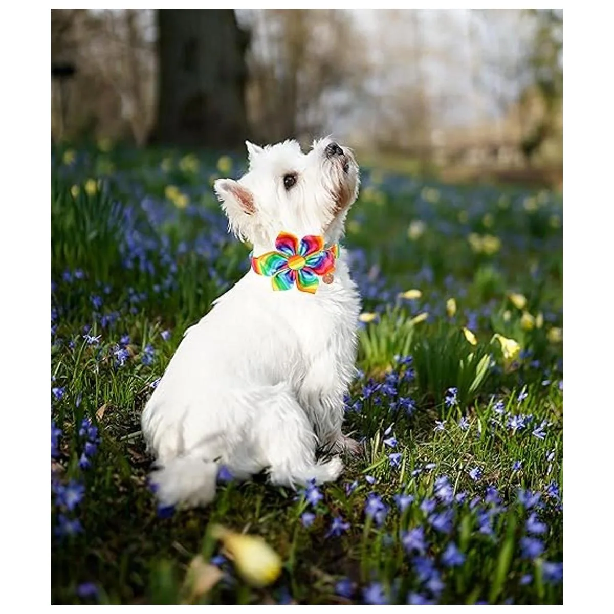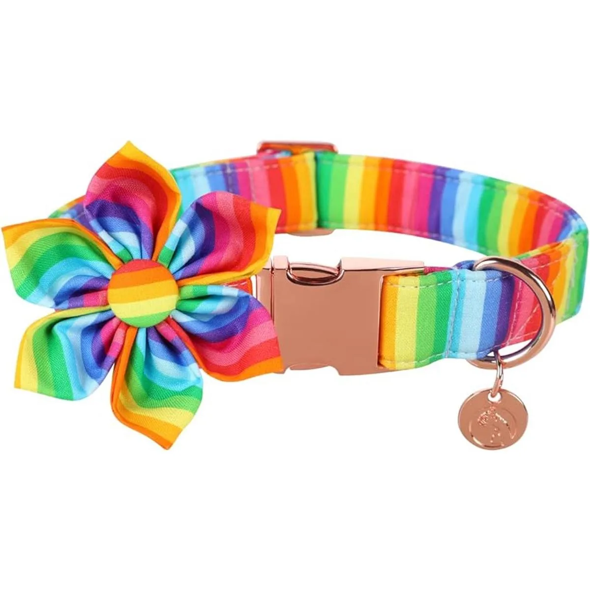 DOGWONG Collar de perro de algodón arcoíris con flor, collar de perro LGBT cómodo y duradero para perros pequeños, medianos y grandes
