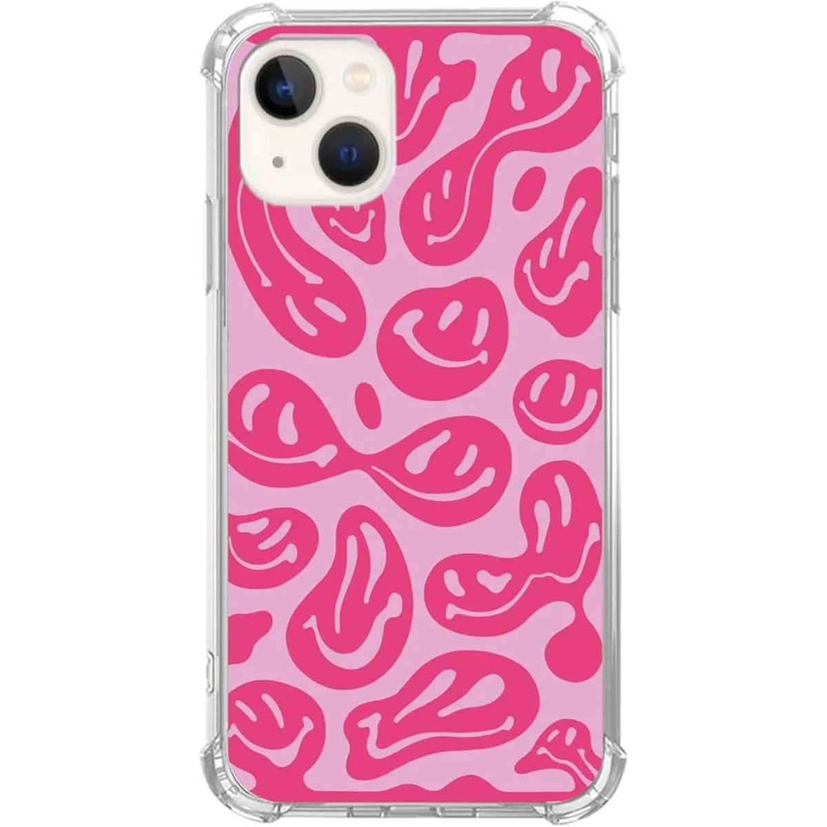 Dohakemuny Funda de cara sonriente rosa compatible con iPhone 13, funda estética Trippy sonriente para iPhone 13 para adolescentes, hombres y mujeres, funda de TPU genial y moderna