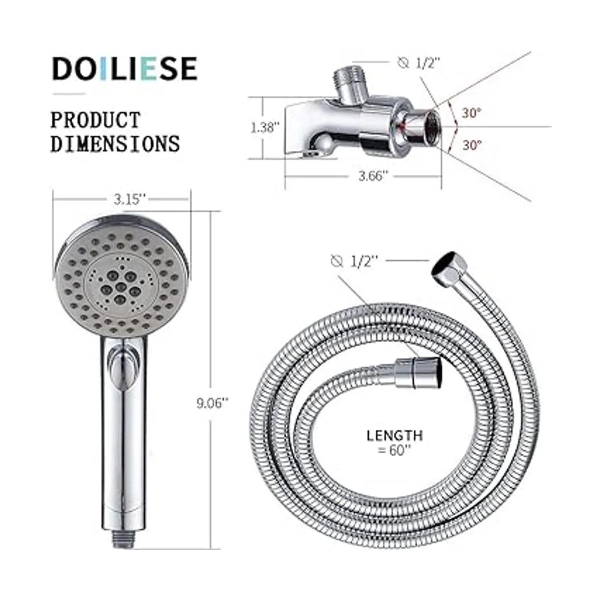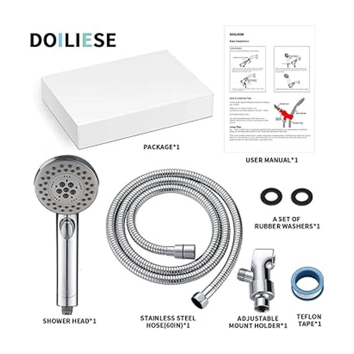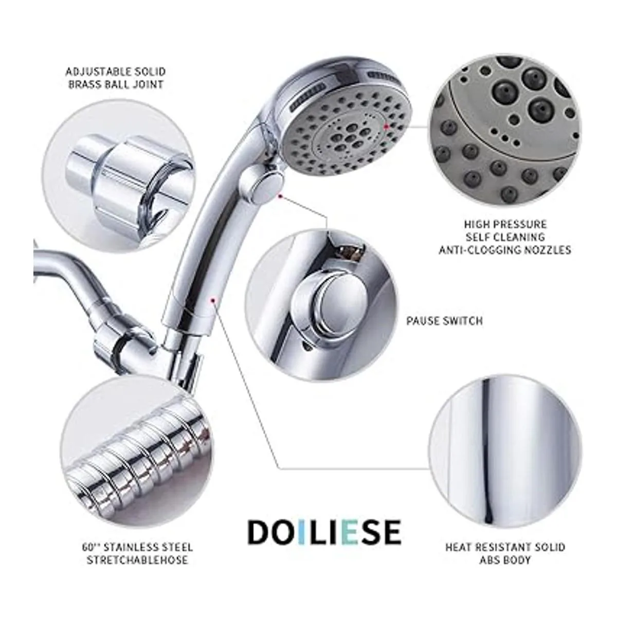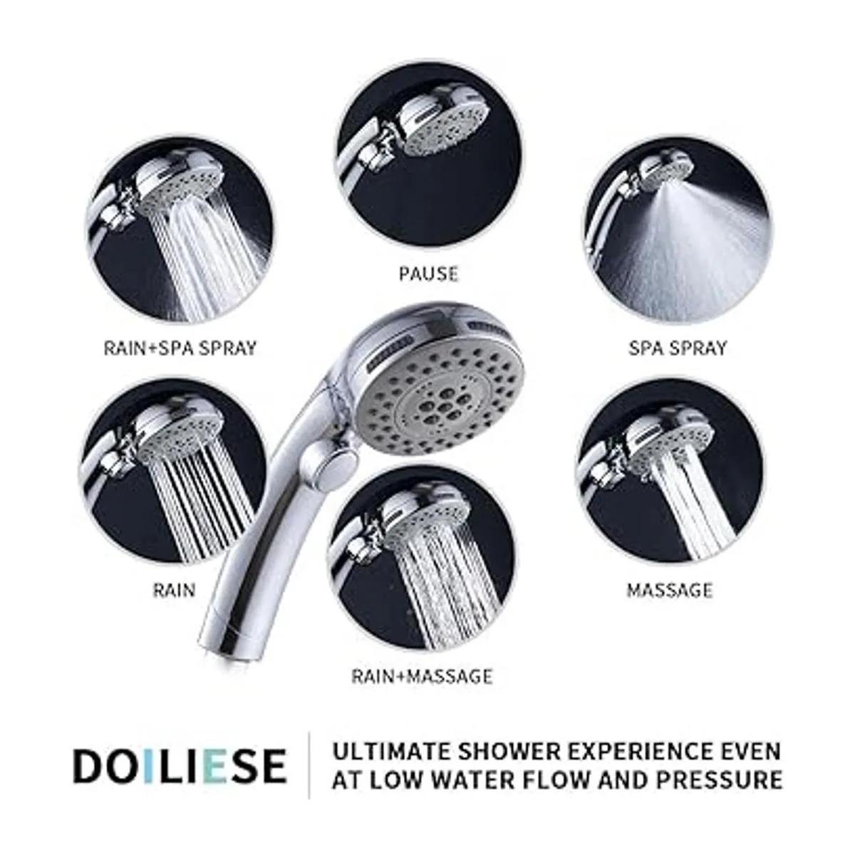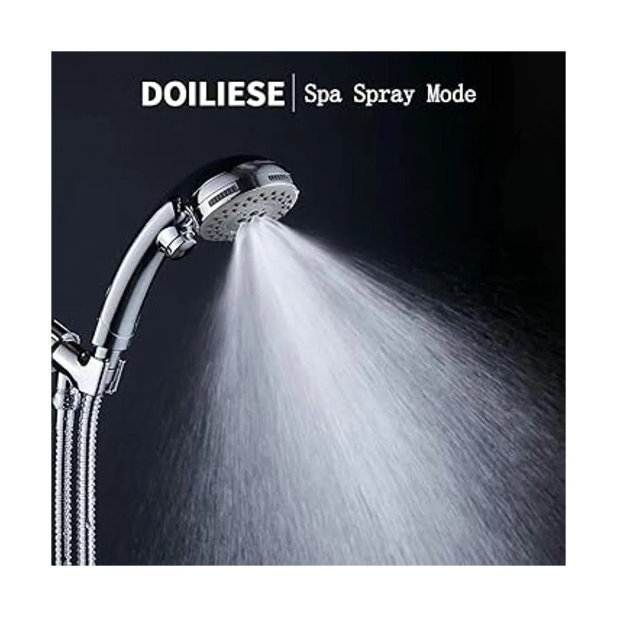 DOILIESE Alcachofa de ducha de alta presión de 6 ajustes con interruptor de encendidoapagado y modo de pulverización de spa, cabezal de ducha de mano con rociador de mano, cabezal de ducha con manguera, cromo