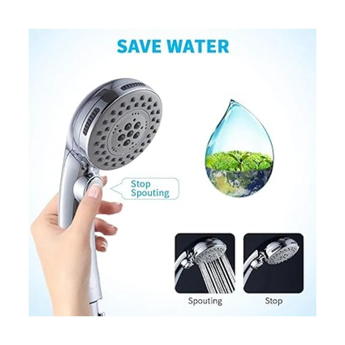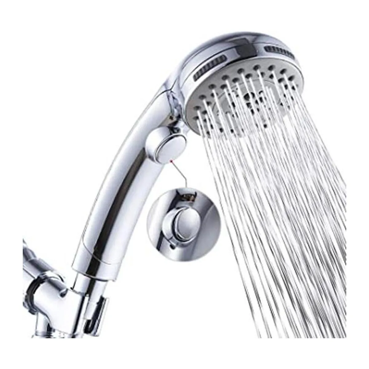 Botón de pausa de encendido/apagado de ahorro de agua: utilizando tecnología avanzada de bloqueo de flujo interno, el modo de pausa puede apagar completamente el flujo de agua. Simplemente presiona suavemente el botón con el pulgar y puedes controlar el interruptor de tu flujo de agua. Esto evita el desperdicio de agua innecesario en la ducha.
