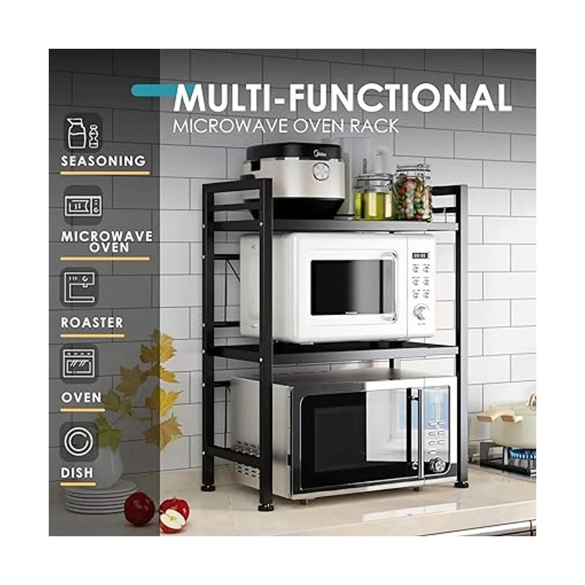 Ayudante para ahorrar espacio en la cocina: di adiós al área de la cocina del caos Con la ayuda del estante de microondas, puedes ordenar tus herramientas de cocina en el estante y ahorrar mucho espacio para cocinar, hacer que tu cocina esté limpia y ordenada; también ahorra tiempo para cocinar alimentos.