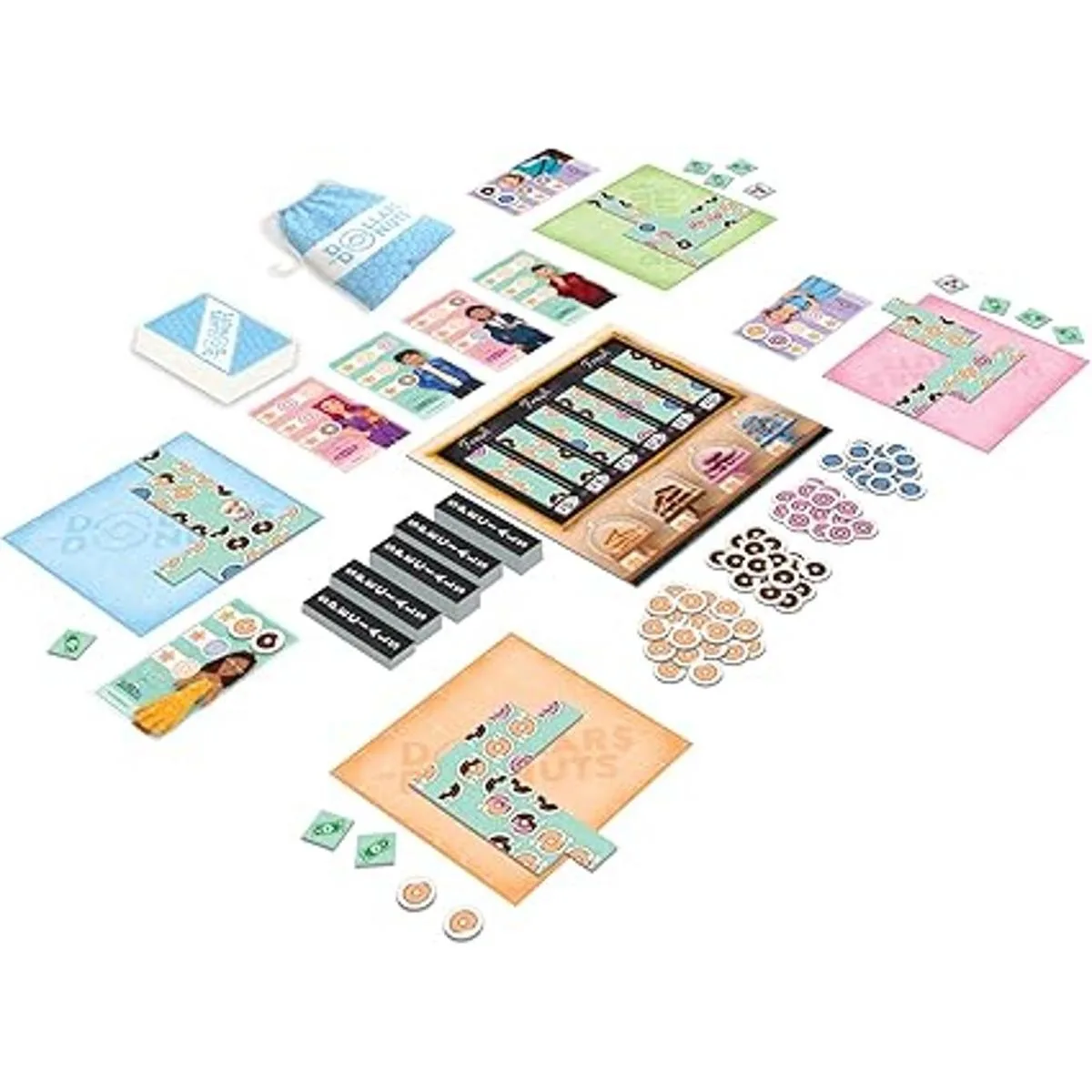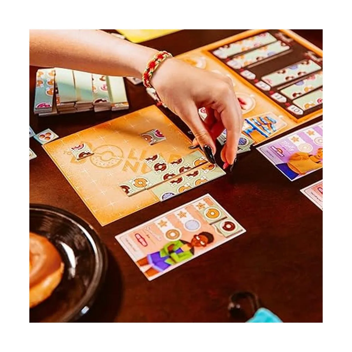 Un juego rompecabezas de donut empresarial y dulces ofertas, de los diseñadores de Point SaladPoint Salad y Truffle ShuffleTruffle Shuffle Draft azulejos para crear deliciosos dulces. Combina donas para marcar puntos y satisfacer a los clientes. Las donas no coinciden ganan dinero para futuras ronas. Libertad en todos los frentes. Coloca los azulejos en tu alfombrilla de jugador. 1 4 jugadores. Edades 10 30 60 minutos de tiempo de juego