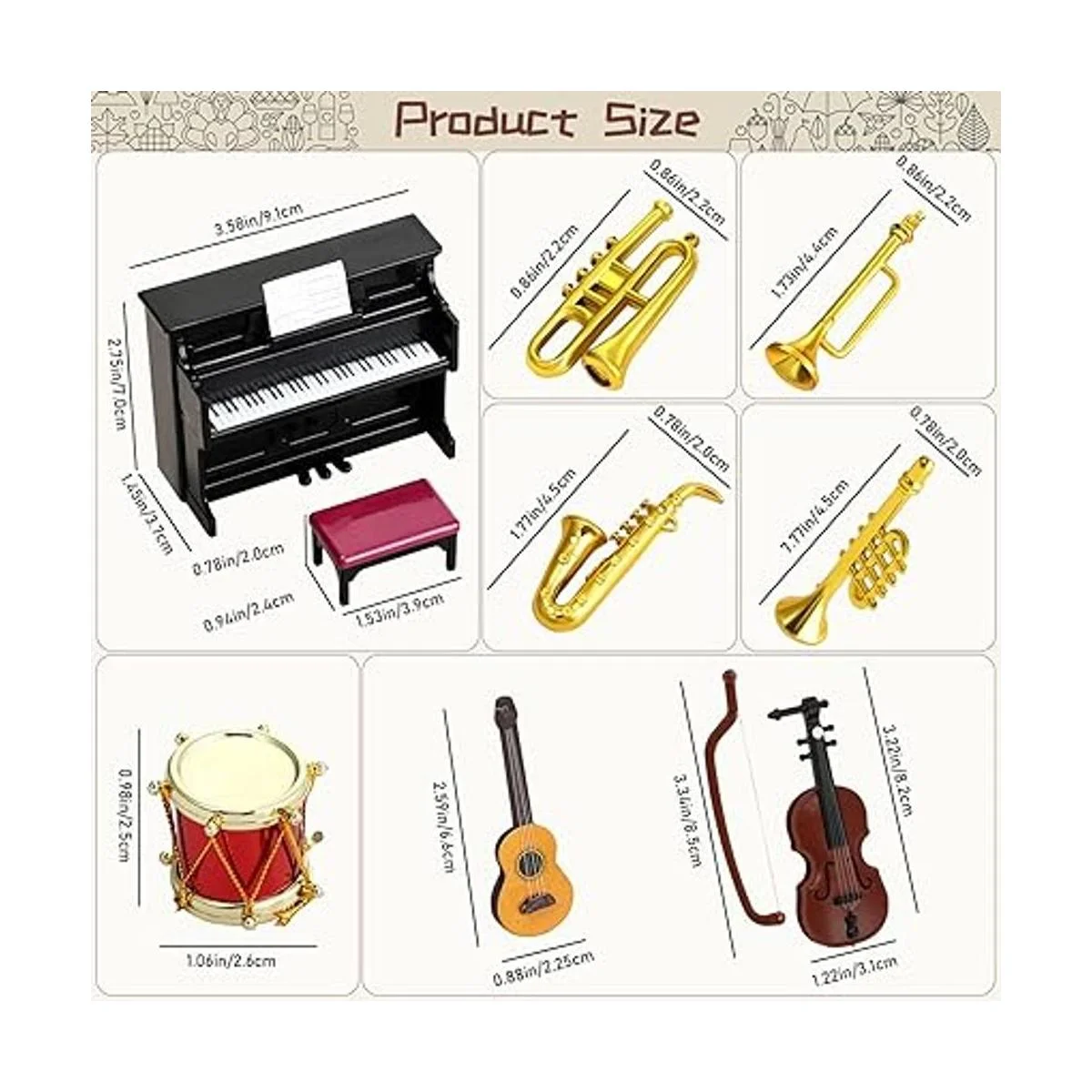 Materiales seguros: los mini modelos de guitarra de saxofón de piano de violín están hechos de plástico, ligero y estable, no tóxico y se puede aplicar con confianza; el tamaño de estos mini accesorios atemporales de casa de muñecas es muy pequeño, pero cada figura es detallada y realista, muy adecuado para la decoración de casa de muñecas y no ocupa demasiado espacio