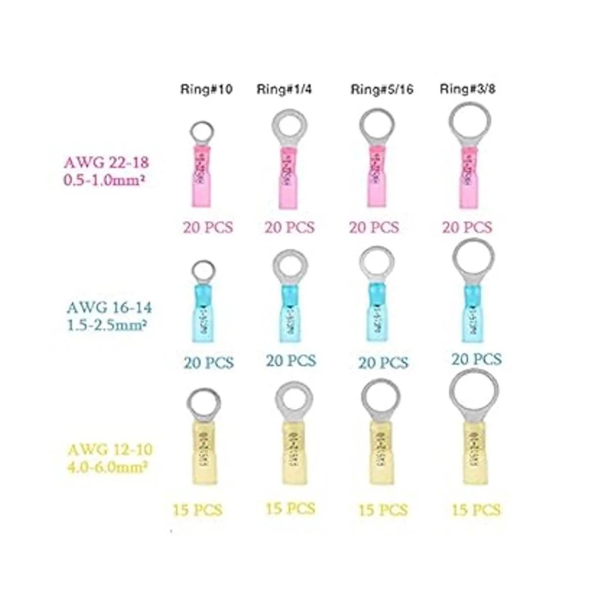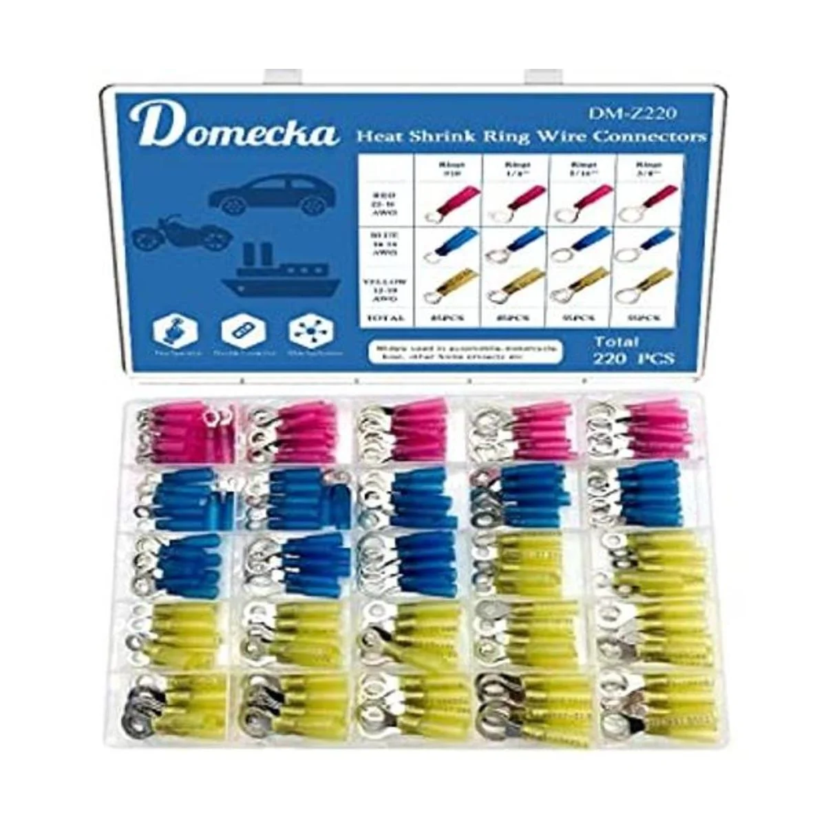 Domecka Juego de 220 conectores de anillo termorretráctiles de grado marino, conectores de alambre termorretráctiles de cobre rojo estañado, terminales de crimpado