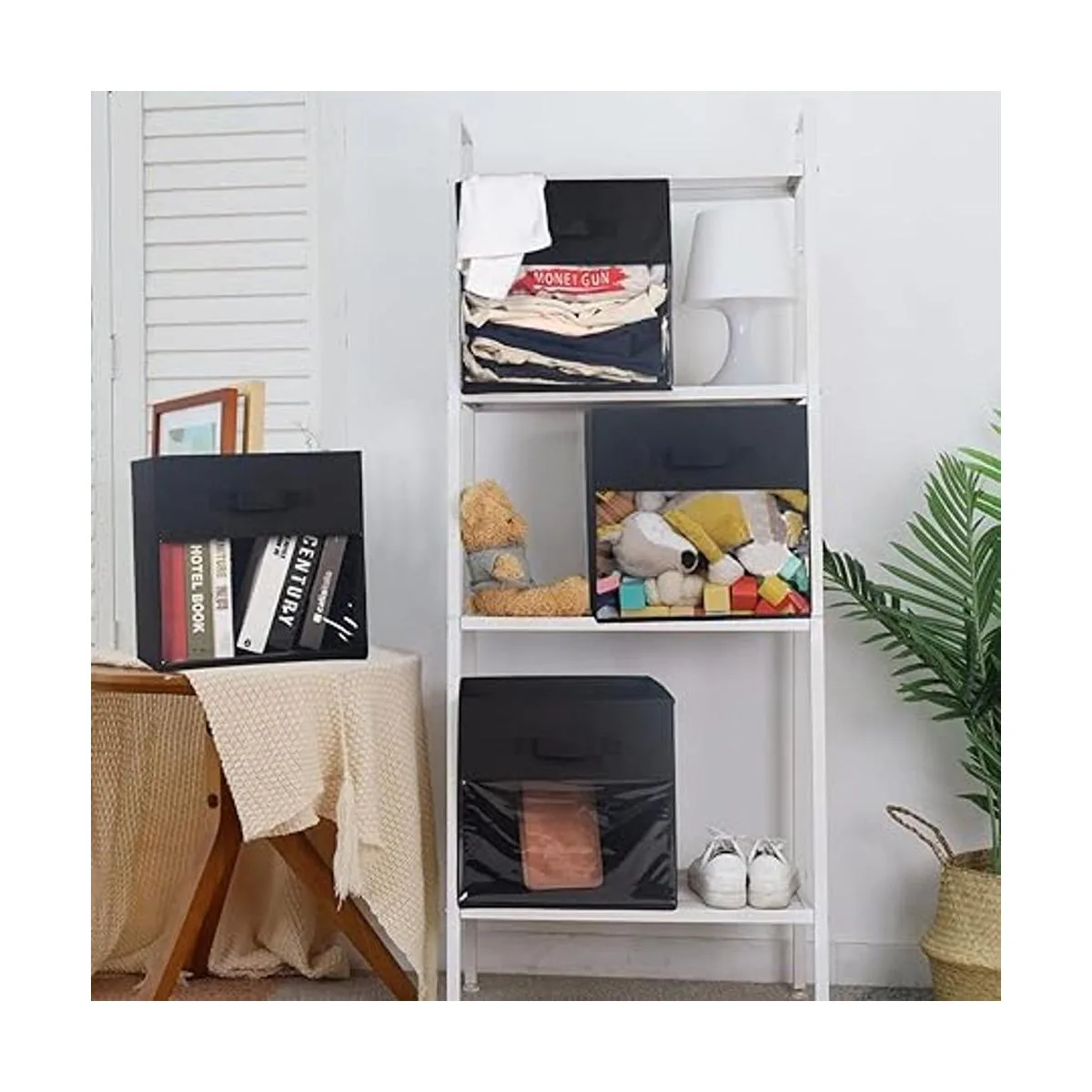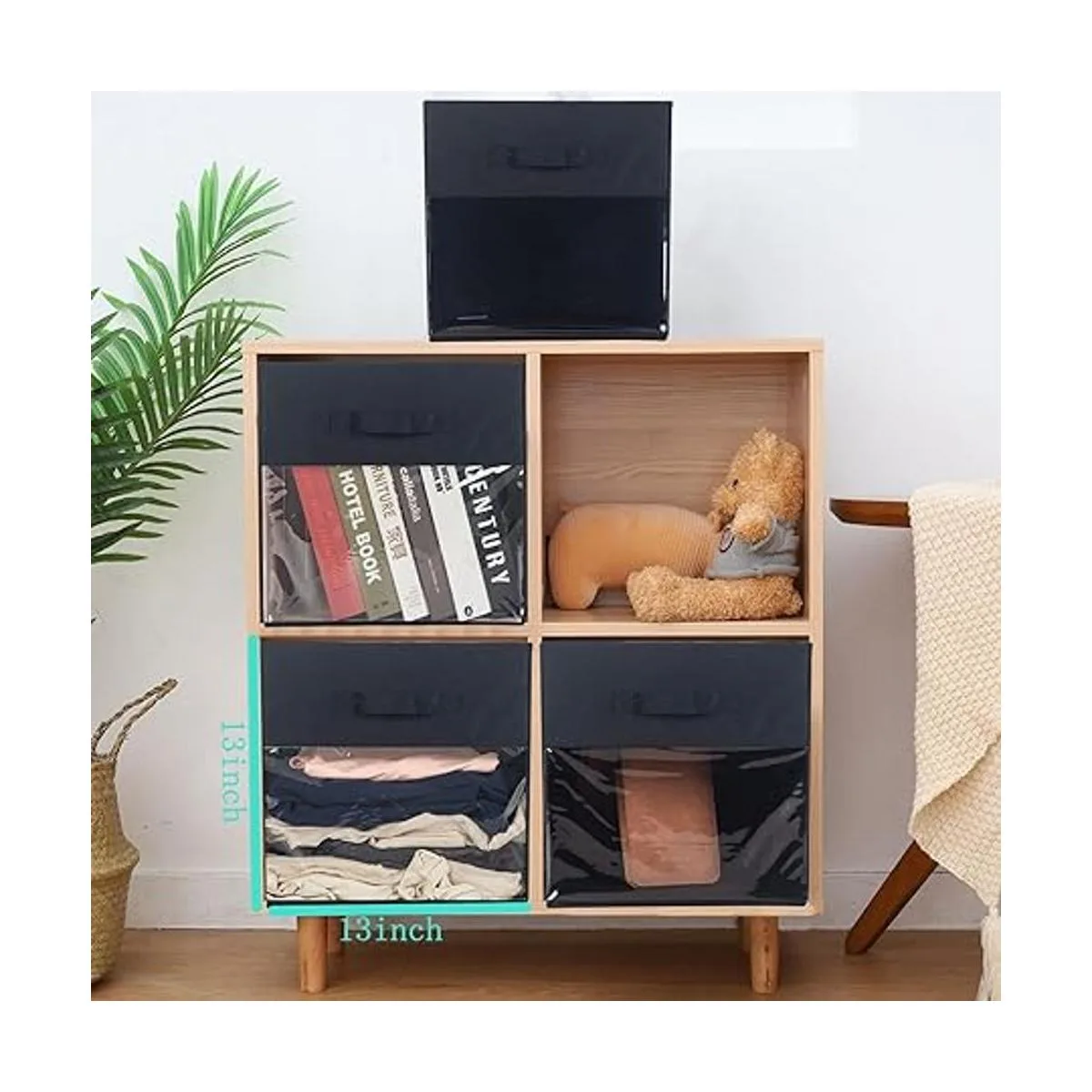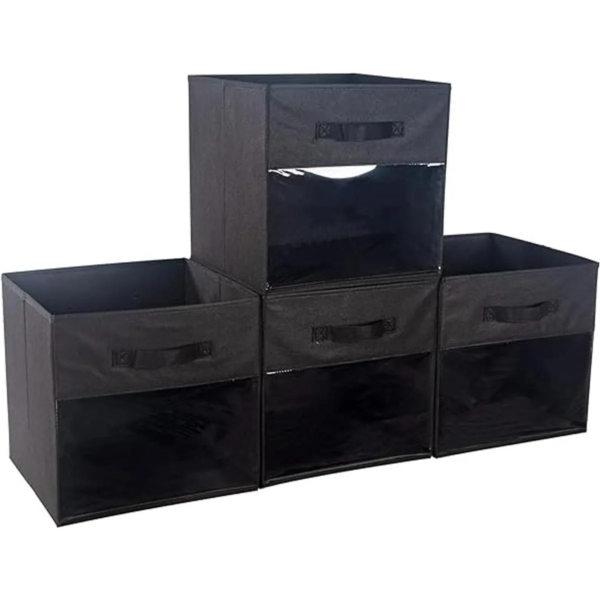 DOMEraax Cubo de almacenamiento de 4 cubos con ventana transparente, cesta grande con asas, organizador de armario de tela, 13 x 13 x 13 pulgadas, color negro