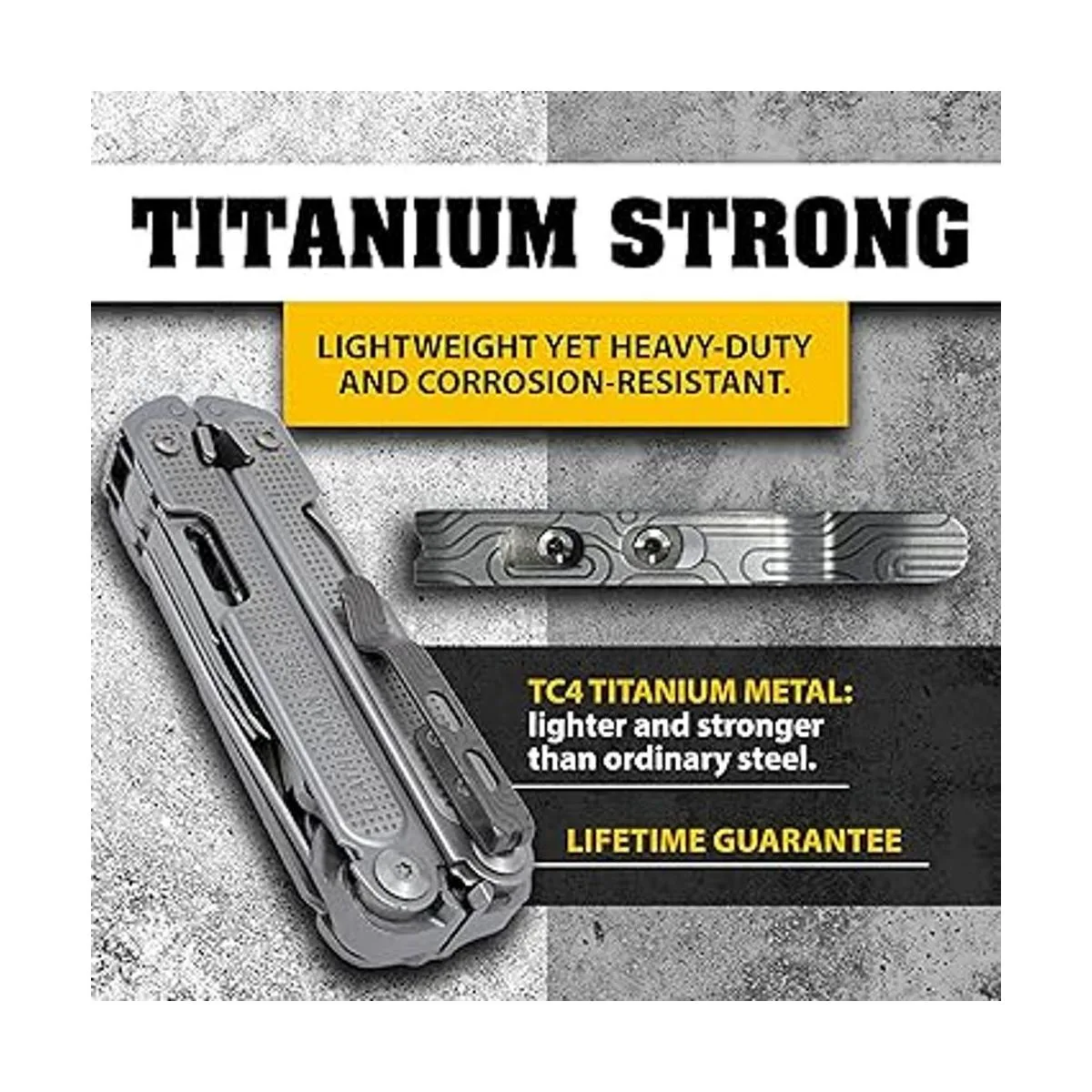 Súper fuerte: el titanio tiene la más alta resistencia a densidad de cualquier elemento metálico. Asegúrate de que tu herramienta Leatherman esté ahí cuando realmente la necesites.