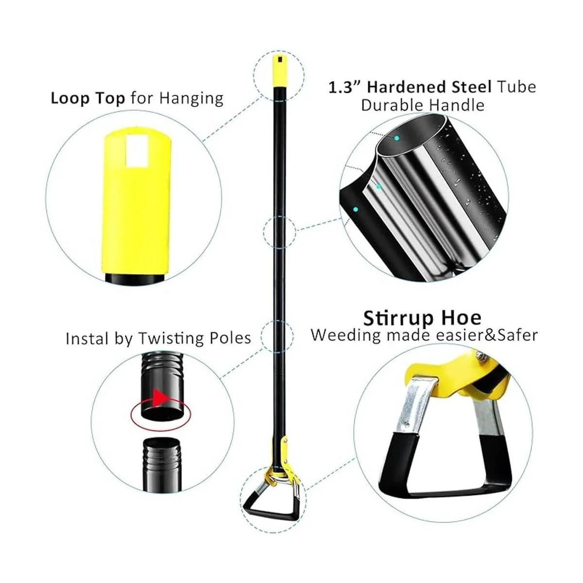 Mango largo de azada de deshierbe La longitud de la azada es ajustable para ser de 30 pulgadas, 43 pulgadas y 60 pulgadas, lo que proporciona la máxima comodidad para jardineros altos y te protege de agacharse.