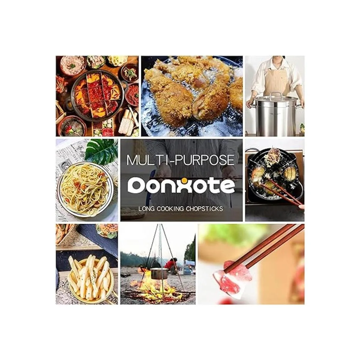 Protección: en algunos eslabones de cocina, los palillos son buenas herramientas. Los palillos ordinarios son tan cortos que las manos pueden quemarse con aceite hervido cuando freimos la comida o producimos vapor de alta temperatura cuando vaporizamos la comida. Así que necesitas un par de palillos más largos para cocinar. Prueba nuestros palillos extendidos Donxote para ti. Es capaz de freír, freír, recoger y hervir con facilidad. Con el Donxote Extended, nunca te preocupes por las manos quemadas.