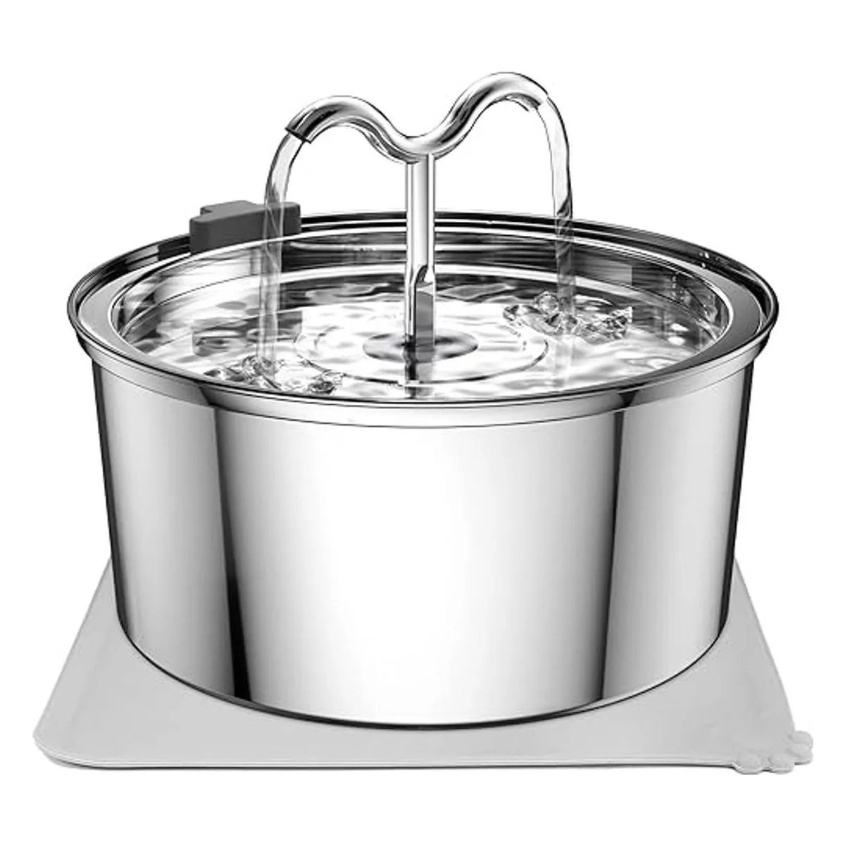 DOOOB Fuente de agua para gatos, dispensador automático de agua para mascotas, de acero inoxidable de 3.2 l108 onzas, fuente de agua para perros, con 3 filtros de repuesto, bomba ultra silenciosa y tapetes impermeables para alimentos